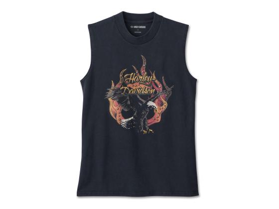 Flügel, Flammen, Freiheit - so lässt sich der coole Stil unseres Spirit of Freedom Muscle Tanktops zusammenfassen. Dieses limitierte, ärmellose Damen-Top ist aus Jersey aus Baumwolle gefertigt, der für einen Vintage-Look gründlich gewaschen wurde. Die Rückseite ist frei gehalten, damit das Adler- und Flammenmotiv auf der Vorderseite voll zur Geltung kommt. Dieses Retro-Design erinnert an die Rally- und H-D Händler-T-Shirts der 1980er Jahre.