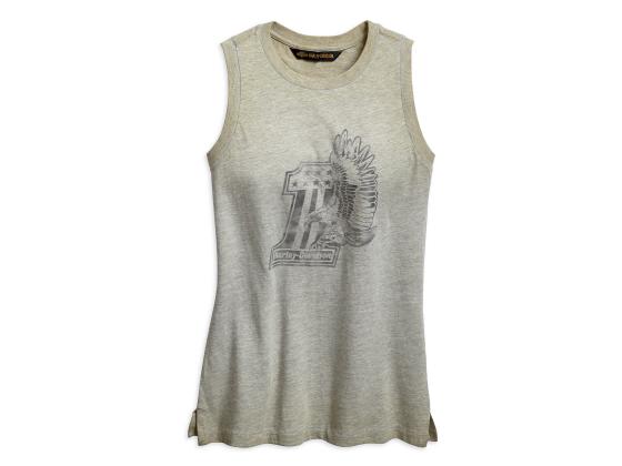 Zeigen Sie Ihre tätowierten Oberarme im #1 Eagle Muscle Tee. Geflockete und überdruckte Vintage Rennsport-Grafiken geben dem ärmellosen Damentop eine getragene Erscheinung.