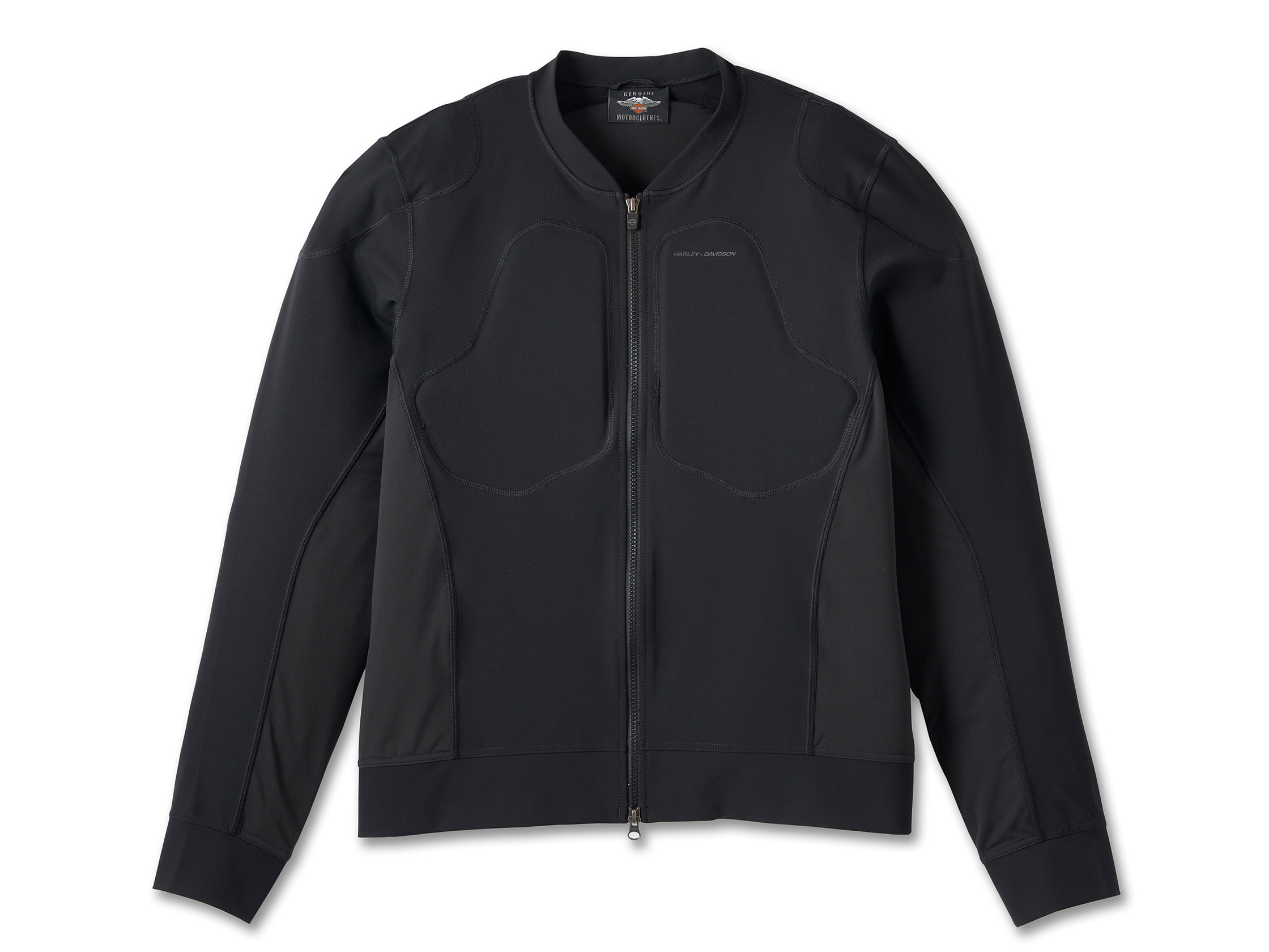 Unser H-D Layering System bietet Schutz und Funktionalität durch bis zu drei Schichten und umfasst eine modulare 1-2-3-Produktlinie von einem Base Layer und von verschiedenen Mid Layern und Outer Layern, die Motorradfahrer und Motorradfahrerinnen zu unterschiedlichen Schutz- und Styling-Optionen kombinieren können. Als erste Schicht des H-D Layering Systems dient das Armored Base Layer aus einem robusten Jersey aus Nylon und Elastan mit Mesh-Einsätzen, die die Luftzirkulation während der Fahrt fördern, sowie mit D3O Ghost Protektoren an Schultern, Ellbogen, Brust und Rücken, die hervorragende Stoßdämpfung bei gleichzeitiger Atmungsaktivität gewährleisten. Der dadurch erzielte Aufprallschutz lässt sich ergänzen um Schutz vor Wind und Kälte durch unser Layering System Windproof Mid-Layer (98126-23VM) oder unser Layering System Lightweight Mid-Layer (98128-23VM). Der umfassende Schutz der Kombination lässt sich komplettieren durch ein abriebfestes Outer Layer wie unsere H-D Layering System Trucker Motorradjacke (98124-23VM), die H-D Layering System Bomber Motorradjacke (98125-23VM), die H-D Layering System Café Racer Lederjacke (98015-23VM) oder die H-D Layering System Captains Lederjacke (98022-23VM).