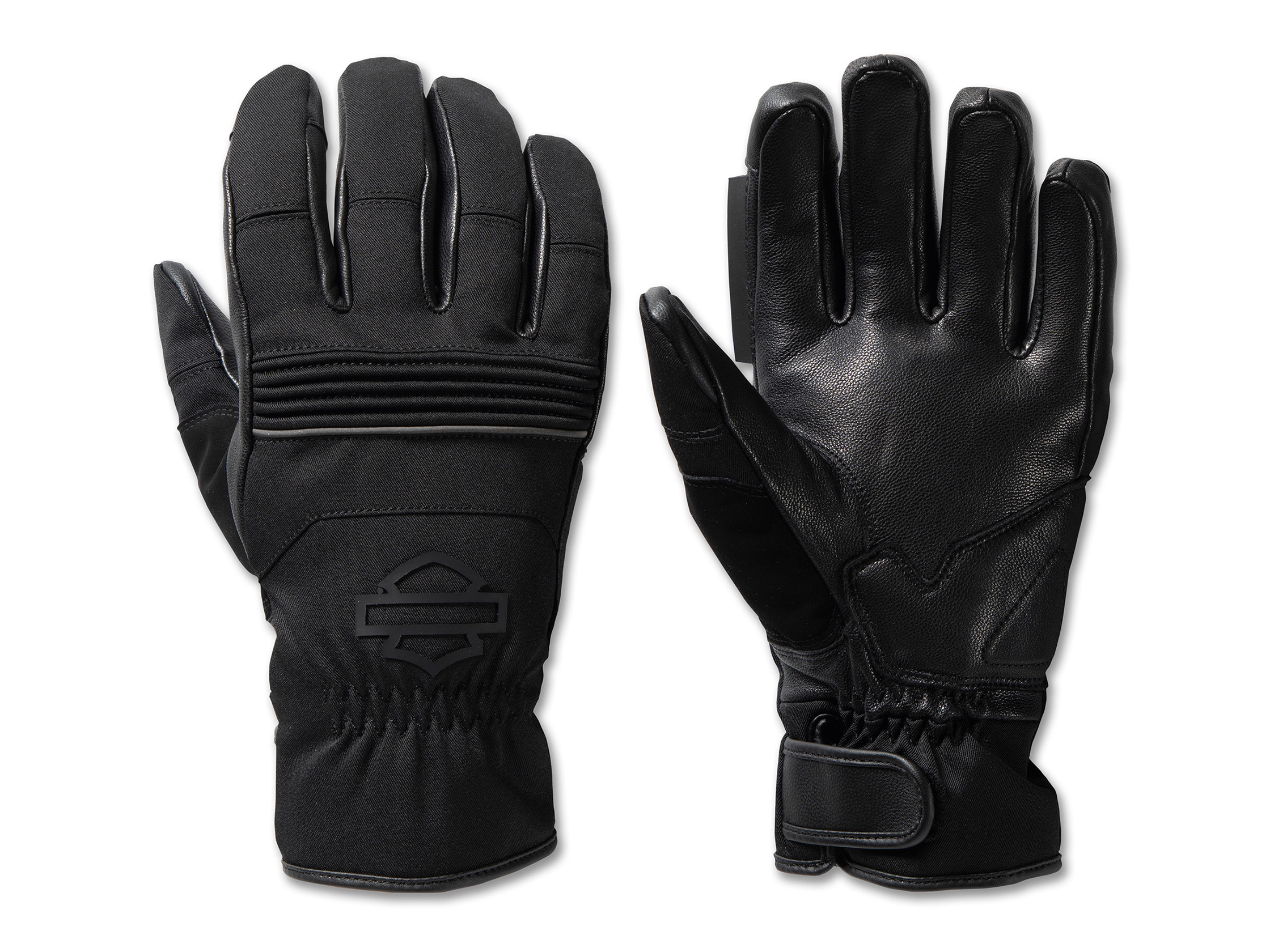 Warm, wasserdicht, komfortabel - dies sind nur einige der Eigenschaften unserer Apex Mixed Media Handschuhe. Diese isolierten Handschuhe sind aus einem robusten Materialmix gefertigt, wasserdicht und nahtversiegelt, um unerwünschte Witterungseinflüsse während der Fahrt fernzuhalten. Bei ihrer Entwicklung wurde an alles gedacht - von Power-Stretch-Knöcheln und gepolsterten Handflächen bis hin zu Touchscreen-Kompatibilität und reflektierendem Material für erhöhte Sichtbarkeit. Als funktionelle Extras sind diese Motorradhandschuhe mit einem Visierwischer am linken Zeigefinger und einem Nasenwischer aus Mikrofaser am Daumen ausgestattet. Das offene Bar & Shield sorgt für einen dezenten, aber dennoch authentischen Harley-Davidson Look.