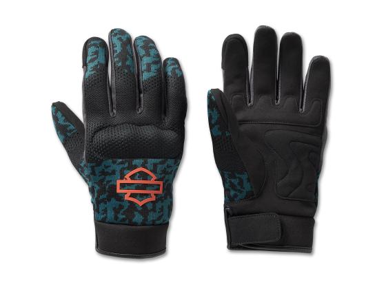 Bei unseren Dyna Knit Mesh-Handschuhen trifft stylisches Muster auf praktischen Fahrkomfort und Schutz. Ihr innovatives Design besteht aus flachen gestrickten Teilen, die sich mit Dir bewegen, und Mesh-Teilen, die die Luftzirkulation fördern, während sie auch Knöchelprotektoren und Polsterungen für einen komfortablen Griff aufweisen. Das einzigartige Multi-Strickmuster wird für einen unverwechselbaren Harley-Davidson Look durch unser offenes Bar & Shield akzentuiert.