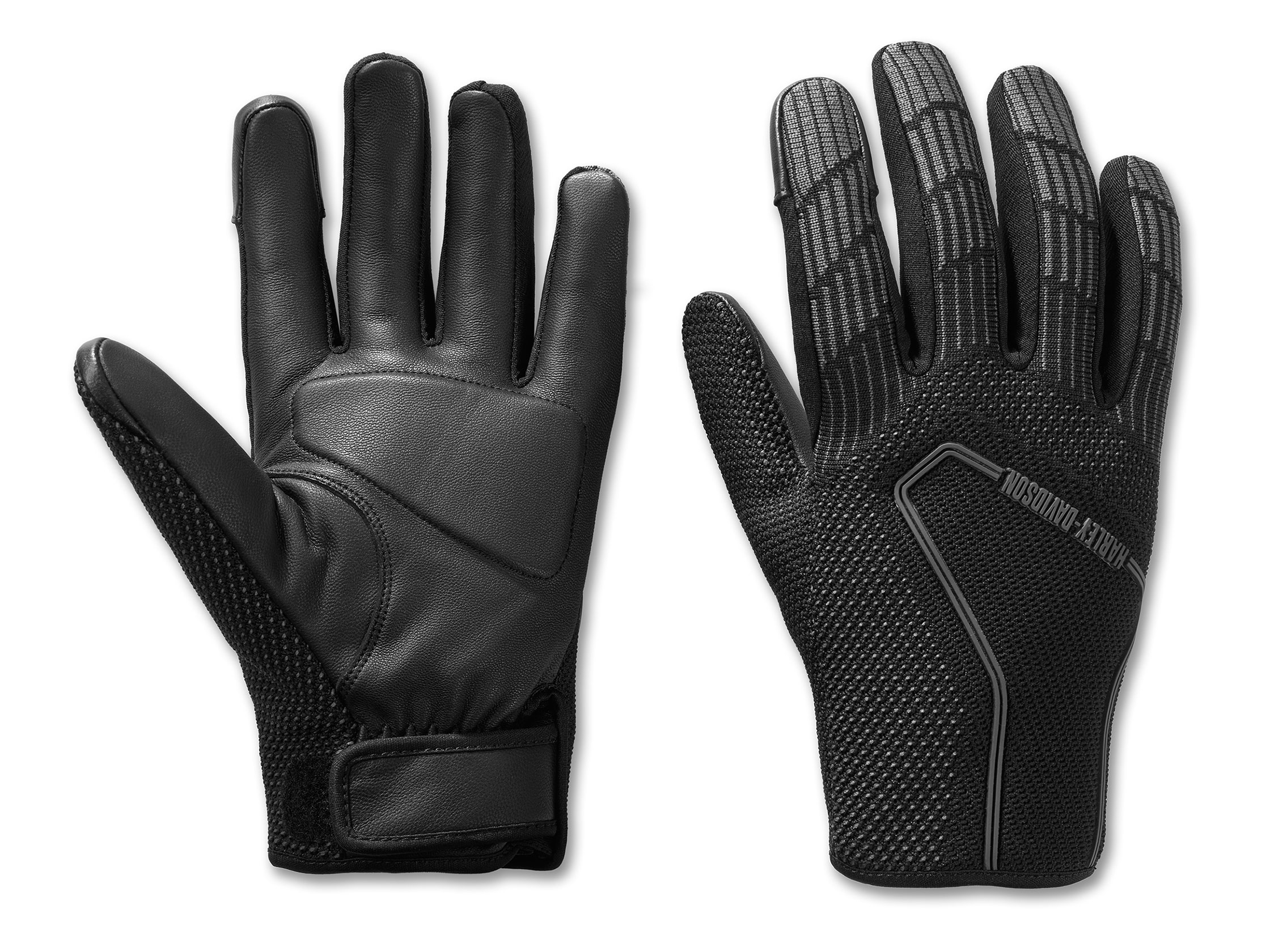Bei unseren H-D Dyna Knit Motorradhandschuhen trifft Moto-Style auf praktischen Fahrkomfort. Gefertigt aus einer Mischung aus butterweichem Ziegenleder und innovativen Strickteilen, die sich an Deine Bewegungen anpassen. Diese Touchscreen-geeigneten Motorradhandschuhe verfügen über gepolsterte Innenhandflächen, die für einen komfortablen Griff sorgen. Abgerundet wird das Design durch ein einzigartiges Muster, ein Innenfutter und unser Branding.