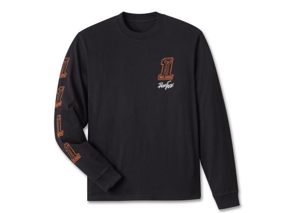 Lässiger Komfort trifft auf ikonische Kunst im Willie G Sketchy #1 Longsleeve. Hergestellt aus schwerer Baumwolljersey in einer lockeren Passform, die enzymgewaschen ist, um ein eingetragenes Gefühl zu vermitteln. Dieses in Amerika gefertigte Langarmshirt für Männer wird durch exklusive Grafiken abgerundet, die auf der Vorderseite und entlang eines Ärmels verlaufen. Es ist Teil der Willie G Ride Free Collection, inspiriert von Skizzen, die von Willie G. entworfen und ausgewählt wurden, um sein kreatives Erbe zu feiern. Kennen Sie die Geschichte: Unser ursprüngliches #1-Logo wurde 1969 eingeführt, um unseren AMA Grand National Championship-Saisontitel zu feiern.