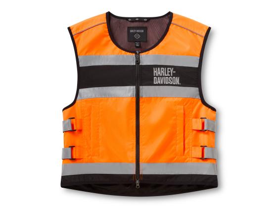 Mit unserer neuesten H-D Hi-Vis Weste bist Du noch besser sichtbar. Wir haben diese bei Fahrern und Fahrerinnen beliebte Weste mit einstellbaren Klettverschlüssen an den Seiten für einen sichereren Sitz und zusätzlichen reflektierenden Streifen für erhöhte Sichtbarkeit auf offener Straße ausgestattet. Sie ist zum Tragen über Deiner Motorradbekleidung gedacht. Dieses Must-have lässt sich zum einfachen Verstauen zusammenfalten, so dass Du es die ganze Saison über griffbereit in Deinem Seitenkoffer aufbewahren kannst.