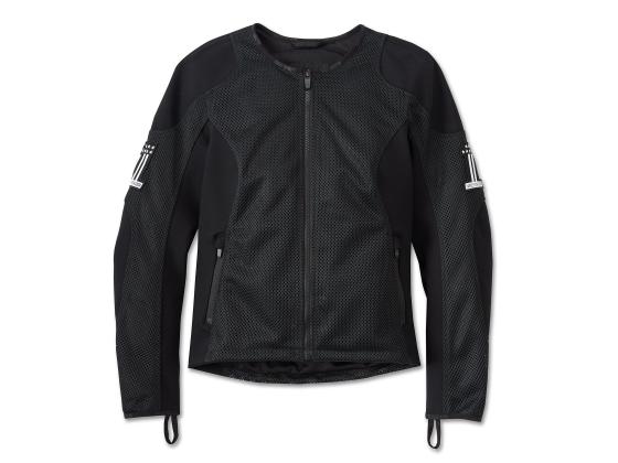 Unsere H-D® Shield Motorradjacke ist auf doppelte Weise cool. Das liegt daran, dass ihr elegantes Design aus großlöchrigem Polyester-Mesh besteht, das die Luftzirkulation fördert (zoome ran für einen genaueren Blick). Diese Motorradjacke für Damen verfügt über Stretch-Einsätze für mehr Komfort und elastische Schlaufen an den Bündchen, um die Ärmel an Ort und Stelle zu halten. Außerdem ist sie vollständig mit unseren D3O® Ghost" Protektoren ausgestattet, die eine hervorragende Aufpralldämpfung bieten, ohne dass Du Dich während der Fahrt beschwert fühlst. Motive an den Bündchen und im Nacken sowie unser #1 Logo an den Ärmeln sorgen für einen dezenten, aber edlen Look. Kleine Geschichtslektion: Das #1 Logo feierte sein Debüt 1969 anlässlich unseres AMA Grand National Championship Titels.