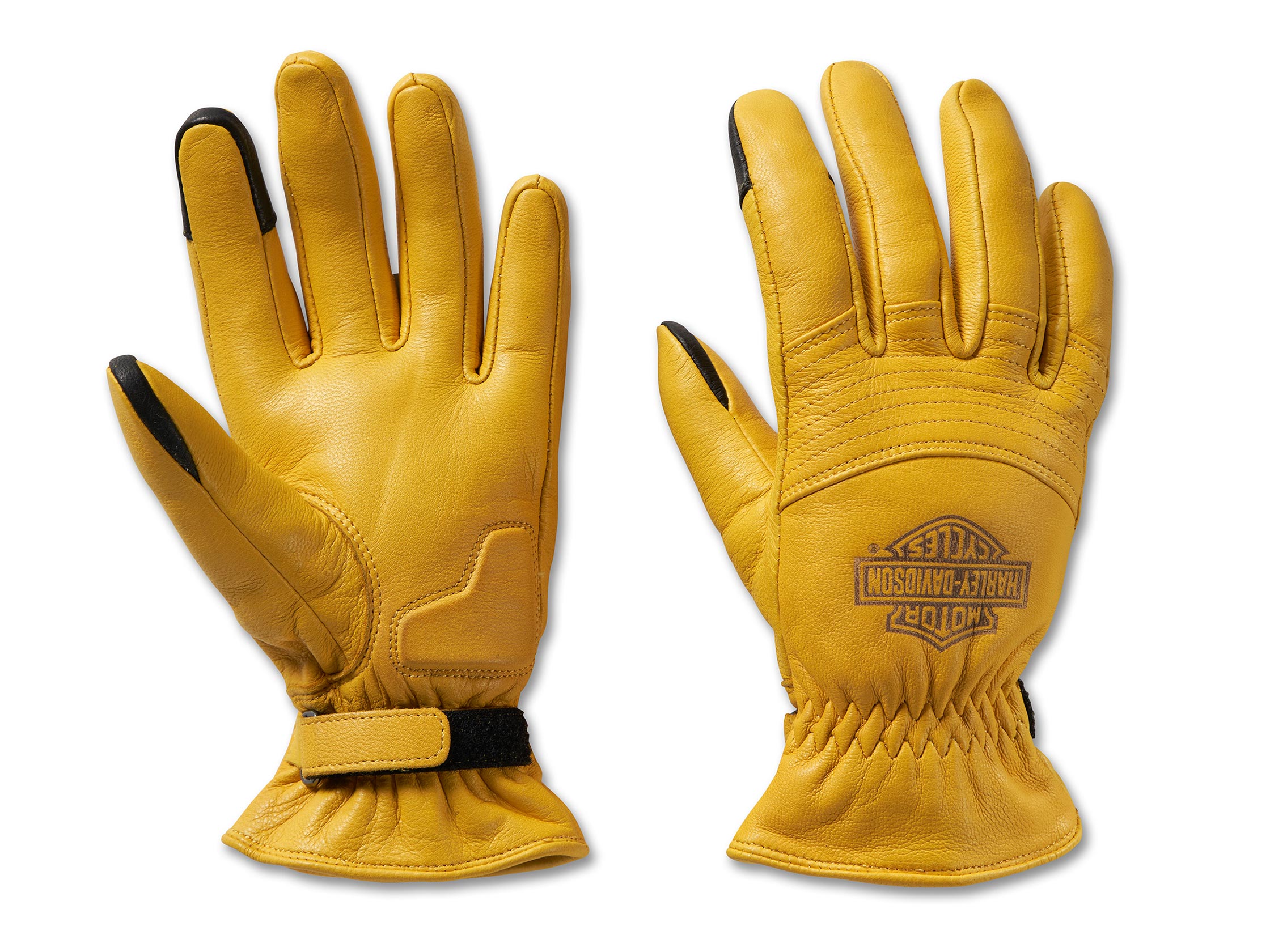 on Arbeitskleidung inspirierter Stil trifft auf Fahrkomfort. Unsere Helm Arbeitshandschuhe aus Leder sind aus geschmeidigem Ziegenleder gefertigt und verfügen über fahrerfreundliche Merkmale wie vorgekrümmte Finger und gepolsterte Handflächen. Diese Touchscreen-geeigneten Handschuhe sind mit unserem legendären Branding versehen und bieten einen unaufdringlichen Look, der 100 % Harley-Davidson ist.