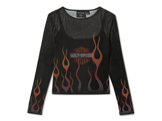 Heißer Look gefragt? Kein Problem - das Flames For Days Mesh Top regelt das. Dieses zweiteilige Set besteht aus einem eng anliegenden Top und einem langärmeligen Überzieh-Shirt aus Netzgewebe. Das durchsichtige Top ist aus leichtem Mesh aus Polyester gefertigt, mit einem Schuss Elastan für zusätzliche Elastizität. Das herausnehmbare Top aus Polyester/Baumwoll-Jersey hat einen Hauch Elastan für mehr Stretch und einstellbare Spaghettiträger. Dieses Twofer für Damen besticht durch seinen auffälligen Stil mit Flammengrafik im Farbverlauf auf dem Körper und an den Ärmeln.