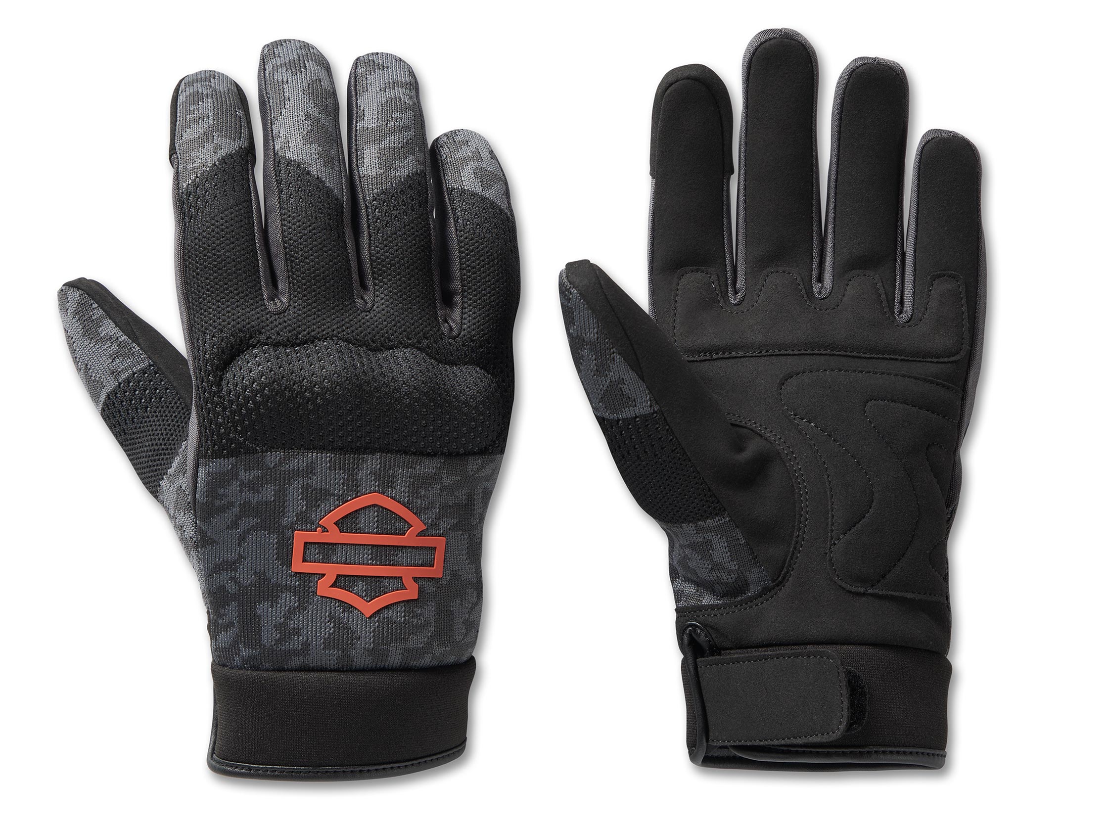 Bei unseren Dyna Knit Mesh-Handschuhen trifft stylisches Muster auf praktischen Fahrkomfort und Schutz. Ihr innovatives Design besteht aus flachen gestrickten Teilen, die sich mit Dir bewegen, und Mesh-Teilen, die die Luftzirkulation fördern, während sie auch Knöchelprotektoren und Polsterungen für einen komfortablen Griff aufweisen. Das einzigartige Multi-Strickmuster wird für einen unverwechselbaren Harley-Davidson Look durch unser offenes Bar & Shield akzentuiert.