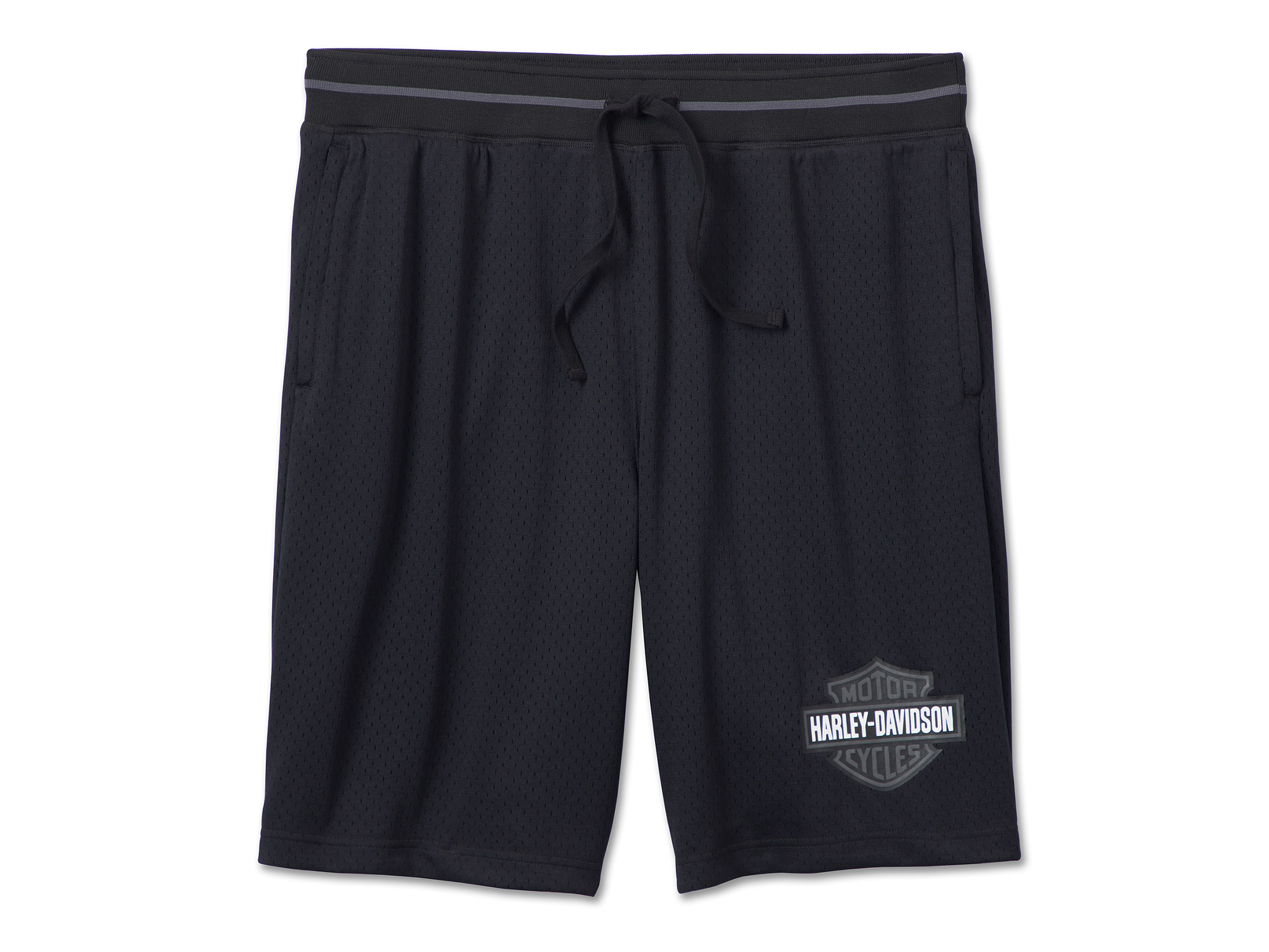 Bei unseren Boiling Point Mesh-Shorts erhält der sportliche Stil ein echtes H-D-Upgrade. Diese knielangen Shorts für Herren in entspannter Passform sind aus schwerem Athletic-Mesh aus Polyester gefertigt. Die sportliche Silhouette verfügt über einen elastischen Kordelzugbund und eine Eingrifftasche mit Reißverschluss hinten, damit Du Deine wichtigsten Utensilien sicher verstauen kannst. Auf der Vorderseite deutet unser legendärstes Motiv an, für welche Motorradmarke Dein Herz schlägt.