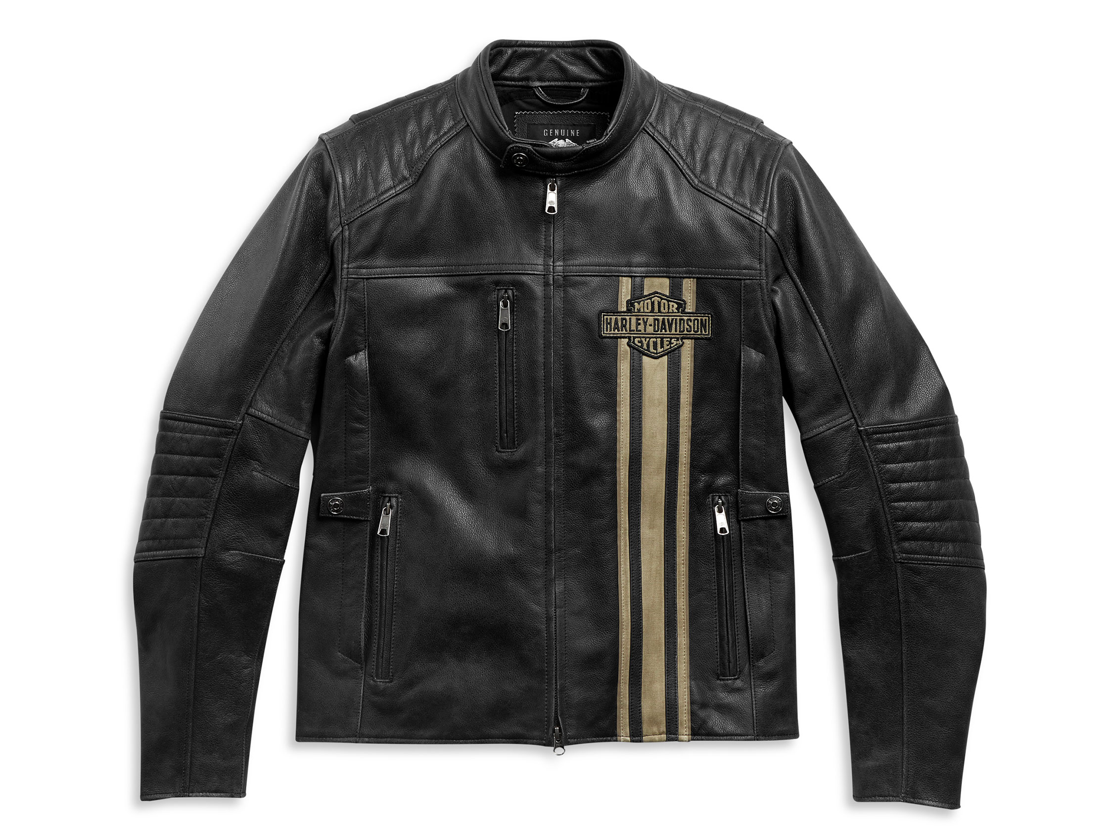 Eine robuste Lederjacke für anspruchsvolles Touring. Sie besitzt Features für lange Fahrten wie patentierte Dreifachschlitze, die eine angepasste Kühlung bieten, und optimierte Bewegungsfreiheit am Rücken für mehr Komfort. CE-zugelassene Protektoren (Ellbogen und Schultern), eine Protektorentasche am Rücken und reflektierende Akzente sorgen für Sicherheit. Die Funktionalität wird mit der Verbindungsoption fortgesetzt, die Dir die Kombination mit Deiner bevorzugten H-D® Motorradhose ermöglicht. Und schließlich sorgen Passform und Stil dafür, dass Du auch auf langen Strecken gut aussiehst.