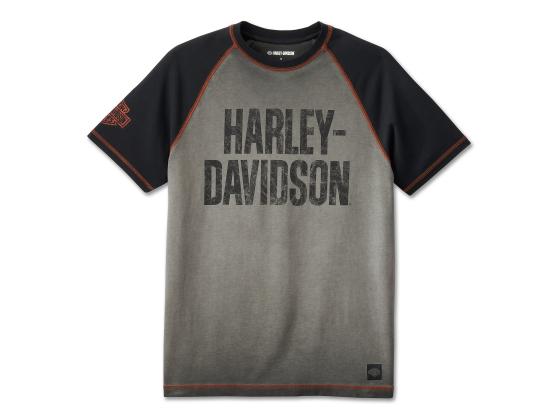Peppe Deine T-Shirt-Kollektion mit dieser Mischung aus retro und modern auf. Unser Iron Bar Raglan-T-Shirt in entspannter Passform ist aus schwerem Twill aus Baumwolle gefertigt und besitzt durch die Kaltpigmentfärbung einen getragenen Look. Die kontrastierenden Raglan-Ärmel, die Abdecknähte und das künstlich gealterte Motiv verleihen diesem kurzärmeligen Herren-T-Shirt ein zeitloses Aussehen, das zu 100 % Harley-Davidson ist.