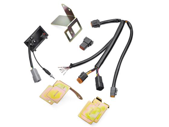 Erhältlich exklusiv für Harley-Davidson Road Tech zu¯mo Navigationssysteme. Das Navigationssystem- Anschlussmodul bietet eine integrierte Verbindung zwischen dem verkleidungsmontierten Advanced Audio Radio und einem Road Tech zu¯mo GPS-Navigator 660 oder 665. Wenn die Verbindung vorhanden ist, wird die Musiklautstärke automatisch reduziert, wenn ein gesprochener GPS-Befehl erfasst wird, so dass Ihre Aufmerksamkeit über die Radiolautsprecher oder das 7-polige Kommunikations- Headset darauf gelenkt wird. Das Modul lässt sich direkt am Radio anschließen, wird von der Verkleidung verdeckt und benötigt keine Verbindung zum AUX-Eingang an der Radiozierblende, was Ihnen erlaubt, über den AUX-Eingang ein tragbares Musikgerät anzuschließen. Kit inklusiver Adapterkabel für Stereowiedergabe vom im zu¯mo-Gerät eingebauten MP3-Player oder XM Radio.