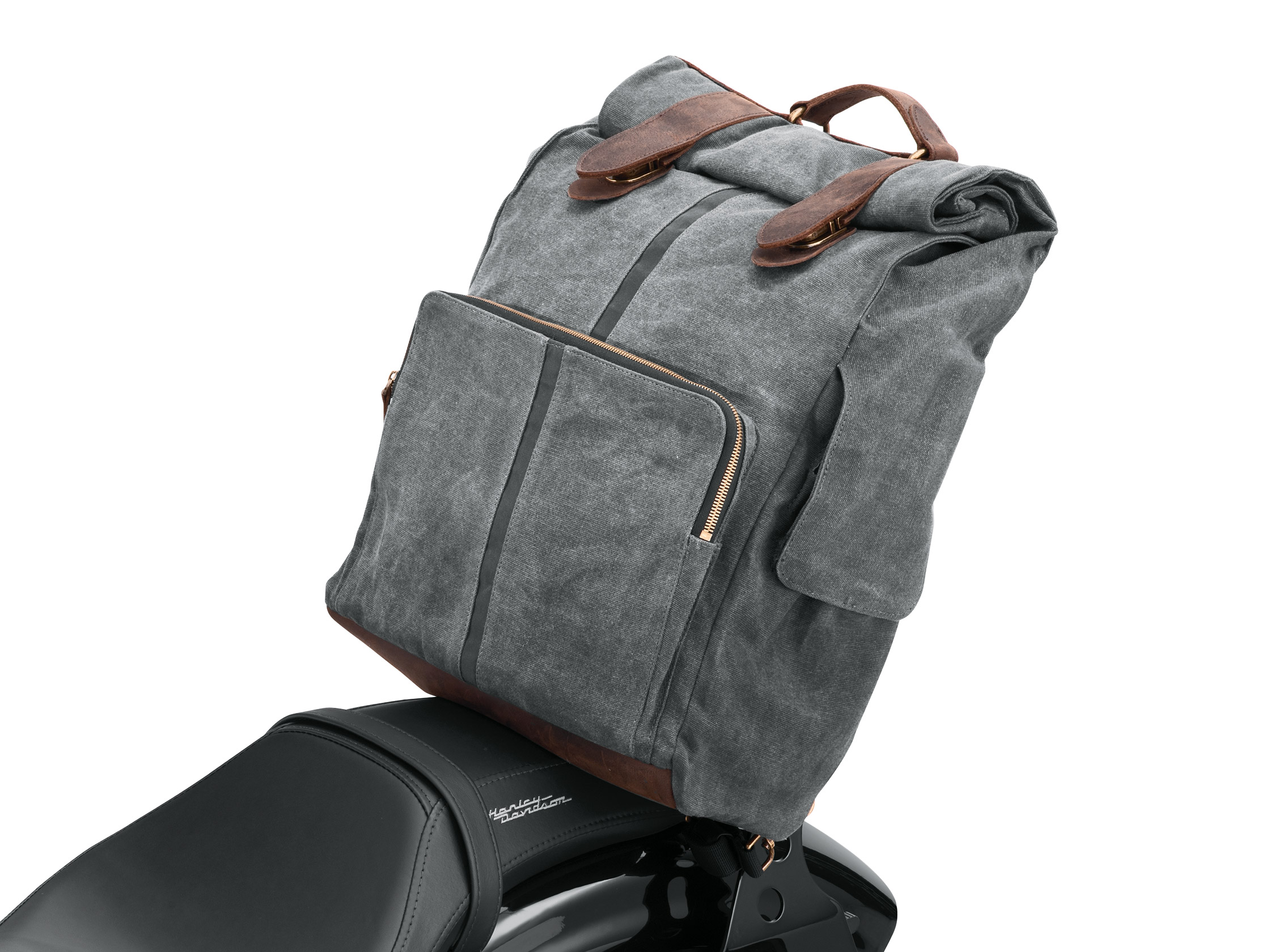 Der Einbau erfordert einen Sissy Bar Bügel und Rückenpolster. Gepäckträger erforderlich, falls die Taschen nicht an einem Soziussitz befestigt werden. Nicht mit XG Gepäckträger kompatibel. Nicht geeignet für kurze Soziusbügel an Softail® Modellen ab '18.