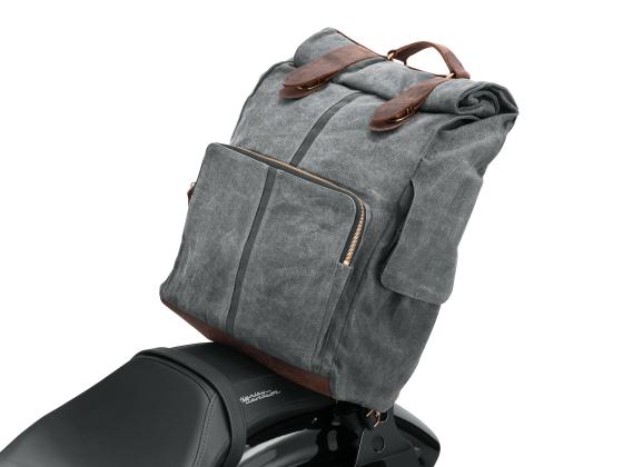 Dieser langlebige, praktische Rucksack lässt sich sicher an Modellen mit Sissy Bar Bügel befestigen, kann aber auch einfach auf dem Rücken getragen werden. Das dicke, gewachste Canvasmaterial aus vorgefärbtem Garn und das robuste Leder an der Unterseite sorgen für einen einzigartigen Look und Charakter. Im gepolsterten Laptop-Innenfach können Sie Ihren Laptop sicher aufbewahren (bis zu 15"). Das Modell mit rollbarem Deckel ist mit benutzerfreundlichen Schnallen versehen, die sich sicher verschließen lassen. Dank dem wasserabweisenden, herausnehmbaren Futter in auffälligem Orange ist der Inhalt gut sichtbar, und die breiten, bequemen Träger (mit Brustgurt) gewährleisten ganztätigen Komfort.
