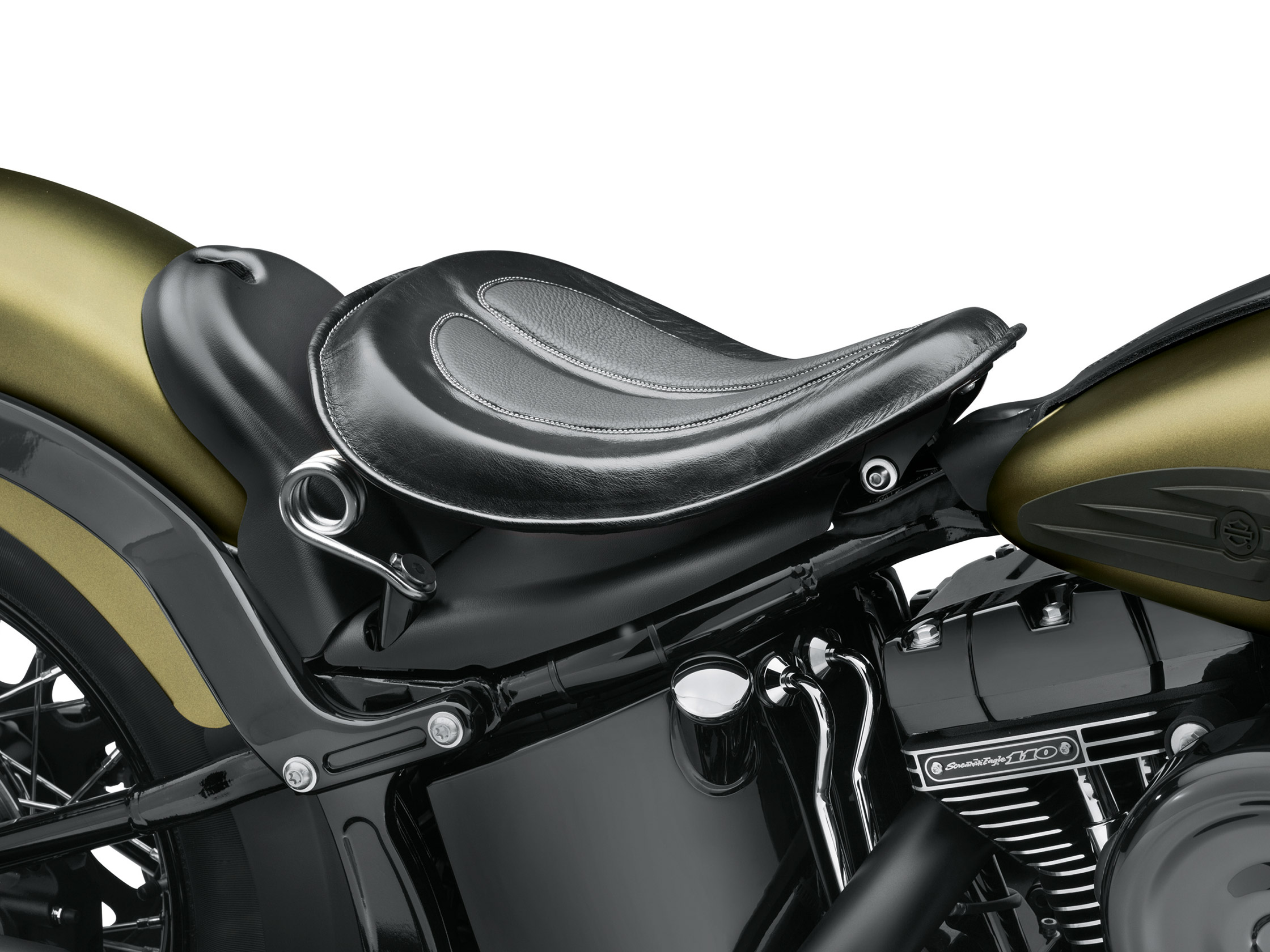 Geben Sie Ihrer modernen Harley-Davidson® einen nostalgischen Bobber-Look. Ein Solo Sitz in elegantem Leder und niedrigem Design für Puristen. Die glatte Sitzschale aus Metall und die einfache Rahmenabdeckung vermeiden jeden Schnörkel. Einfache Montage. Die modellspezifischen Federsitz- Einbaukits enthalten alles, was Sie für den Bobber-Look brauchen. Kein Schneiden, Schweißen oder Umbau - und der Sitz kann auf einfache Weise ausgebaut und durch einen Touring Sitz ersetzt werden, wenn Sie mit einem Sozius durch die Stadt cruisen möchten.