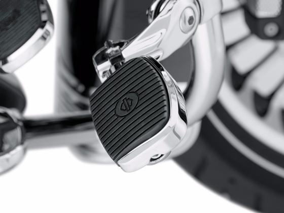 Diese Minitrittbretter können anstelle der konventionellen Fußrasten eingebaut werden und geben Ihnen ein wenig zusätzliche Beinunterstützung sowie weitere Möglichkeiten zum Bewegen Ihrer Füße auf langen Strecken. Minitrittbretter werden an den serienmäßigen H-D® Fußrastenhaltern montiert und können so in vielen Fahrer- und Soziusanwendungen eingesetzt werden. Die Trittbretter, die etwas größer als ein Fahrradpedal sind, können beliebig gedreht werden und bieten so einen optimalen Fahrkomfort.