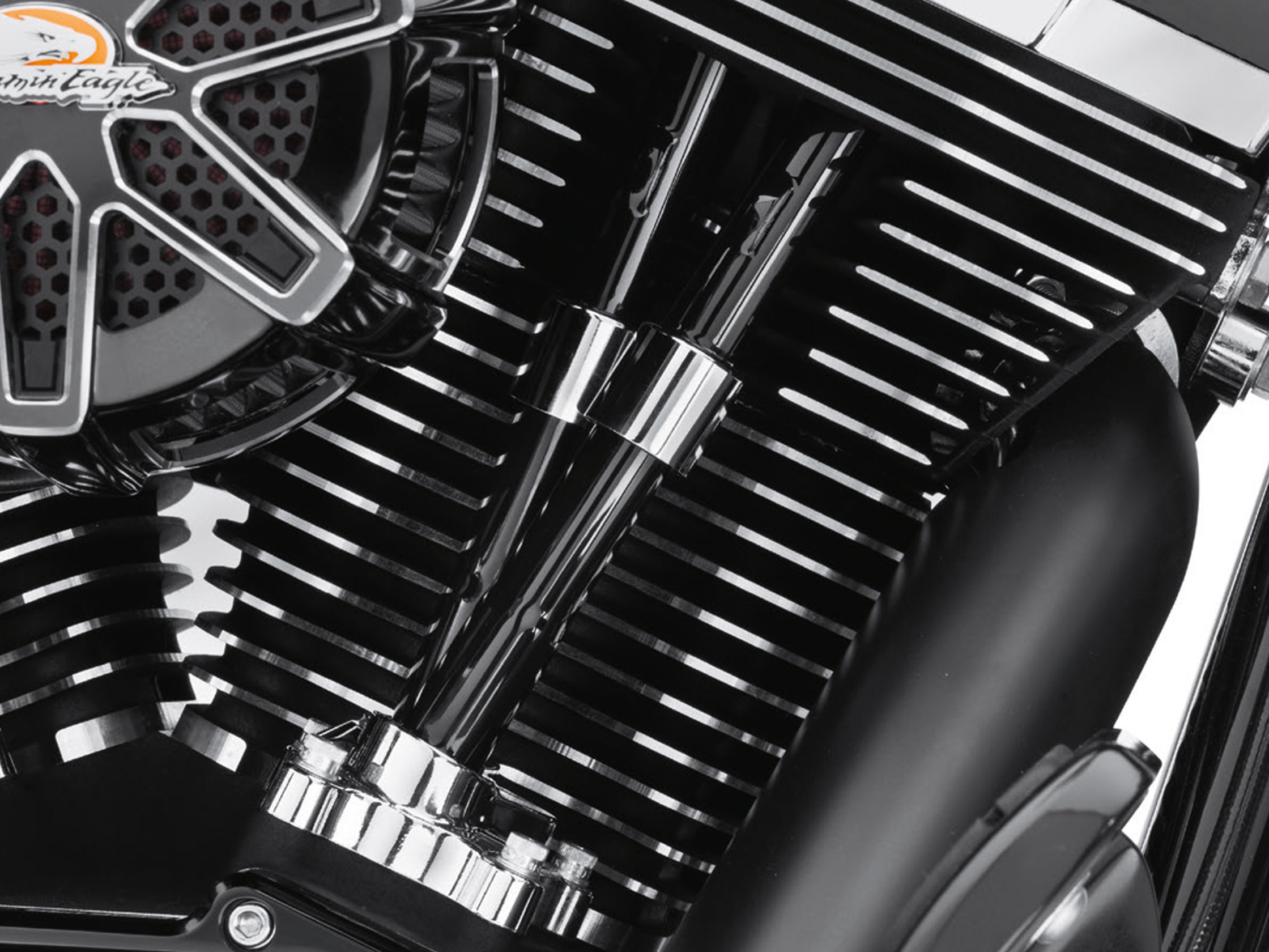 Zur Vergrößerung des Spiels am Zylinderkopf weisen diese Premium Stößelstangen eine konische Form auf, was die Verwendung von Nockenwellen mit höherem Hub ermöglicht. Die einteiligen Chrom-Molybdän-Rohre erhöhen die Steifigkeit und Haltbarkeit. Die mit einem Gewinde versehenen Einsteller ermöglichen einen einfachen Nockenwelleneinbau ohne Ausbau von Zylinderköpfen und Kipphebelgehäusen. Zur Vereinfachung der Einstellung weist das Rohr sechs Abflachungen auf, von denen eine mit einem großen Punkt markiert ist und als Bezugsmarke dient. Die Gewindestange hat 4 Abflachungen, damit mit weniger Schlüsseldrehung gearbeitet werden kann. Jede Stößelstange ist mit dem Screamin' Eagle Logo verziert und für die Einlass- und die Auslassseite gekennzeichnet. Kit inklusive 4 Stößelstangen und benötigter Stößelrohre.
