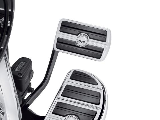 Diese einfach zu montierenden Bremspedalauflagen, die in zwei Größen passend für die meisten Harley-Davidson® Motorräder erhältlich sind, ergänzen die Fußrasten und Trittbretteinsätze der Willie G Kollektion, um einen kompletten Look zu erzielen.