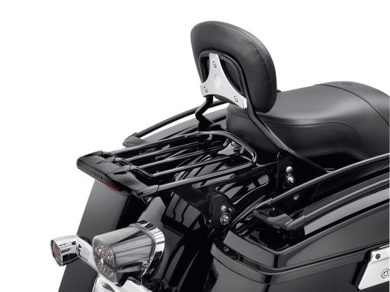Das aerodynamische Styling mit dem niedrigen Profil definiert den Look dieses Gepäckträgers. Dieser Gepäckträger, der sowohl mit als auch ohne abnehmbare Soziusrückenlehnen verwendet werden kann, lässt sich im Handumdrehen an die Anschlussteile anbauen und von diesen abnehmen und sorgt damit für ein wirklich vielseitiges Fahrvergnügen. Die Ausführungen in Spiegelchrom oder tiefem Schwarzglänzend lenken die Aufmerksamkeit auf die schnittige Linienführung des Gepäckträgers, während der eingravierte "Harley- Davidson®" Schriftzug für das charakteristische Aussehen sorgt. Die Druckguss-Kantenverzierung und leichtgewichtigen Stahlrohre sind handpoliert für lang anhaltenden Glanz. Kit inklusive aller erforderlichen Montageteile. Um die Sichtbarkeit zu erhöhen, kann der Gepäckträger die Verkabelung für die Air Wing Gepäckträgerbeleuchtung P/N 68065-10 oder 68219-10 aufnehmen (separat erhältlich) .