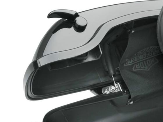 Schwarzglänzende Satteltaschen-Scharnierabdeckungen und leicht zu bedienende Verschlüsse verleihen Ihrem Touring Bike auf einfache Art und Weise einen einzigartigen einfarbigen Look. Diese Verschlüsse verleihen dem Profil des Motorrads einen dunklen Custom-Touch und ergänzen nahezu jede Lackkombination. Einfache Montage mit originalen Montageteilen und Reflektoren.