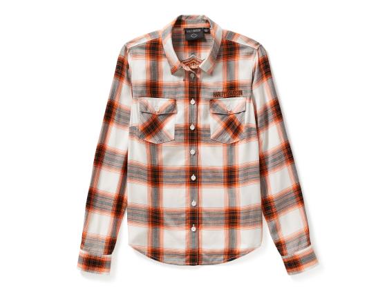 Bluse "Essential Bar & Shield Woven Plaid Long Sleeve Orange"