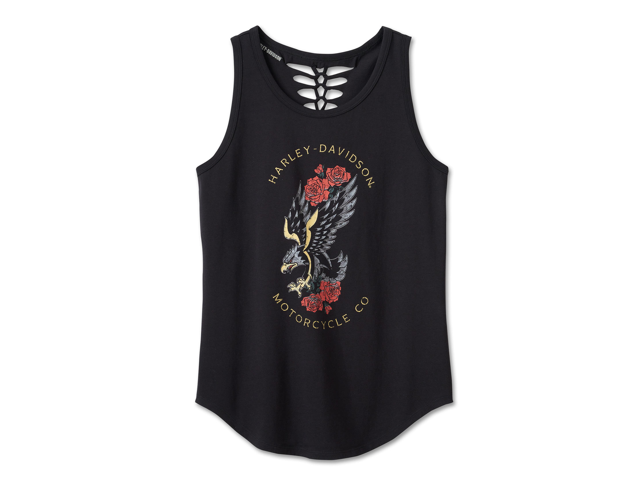 Geschlitzt, geschlungen und überwältigend: Dafür steht diese Limited Edition. Unser American Traditional Rip & Repair Tanktop ist aus atmungsaktivem Jersey aus Baumwolle gefertigt, der für zusätzliche Weichheit und einen getragenen Look gewaschen wurde. Es hat einen schmeichelhaften Rundhalsausschnitt und einen Hemdzipfelsaum, aber das, was dieses Tanktop für Damen zu einem Style-Hit macht, ist sein unverwechselbarer geschlitzter, geschlungener und gebundener Stoffrücken. Mit unserem von Tattoos inspirierten Motiv, das an die Rally-Kleidung der 1980er Jahre erinnert. Sichere Dir diesen Look jetzt, bevor er vergriffen ist.
