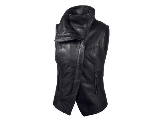 Materialien: Vorderseite aus Lammleder. Rücken: 86% Nylon, 14% Elasthan. Verschluss: Asymmetrische Reißverschluss-Front. Taschen: Handwärmetaschen mit Reißverschluss. Grafiken: Gestickte Grafiken.