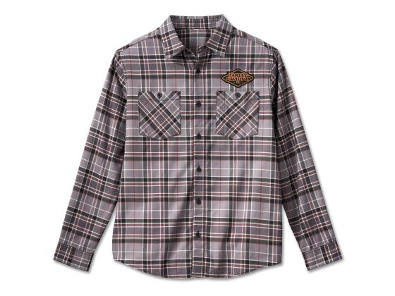 Unser 120th Anniversary Plaid Shirt verpasst einem beliebten Muster einen Hauch von Motorradgeschichte. Gefertigt aus einer strapazierfähigen Twill-Mischung aus Baumwolle, Polyester und Elastan, die weich gewaschen wurde, damit das Teil als zusätzliche Schicht eine bequeme Wahl ist. Mit einer Stifttasche, einstellbaren Bündchen und einem Kragen, der dank versteckter Druckknöpfe beim Fahren an seinem Platz bleibt. Auf der Vorderseite befindet sich ein spezieller Aufnäher, der unser langjähriges Erbe feiert. Kombiniere dieses Karohemd mit unserer 120th Anniversary Baseball Cap, um unseren Meilenstein gebührend zu würdigen.