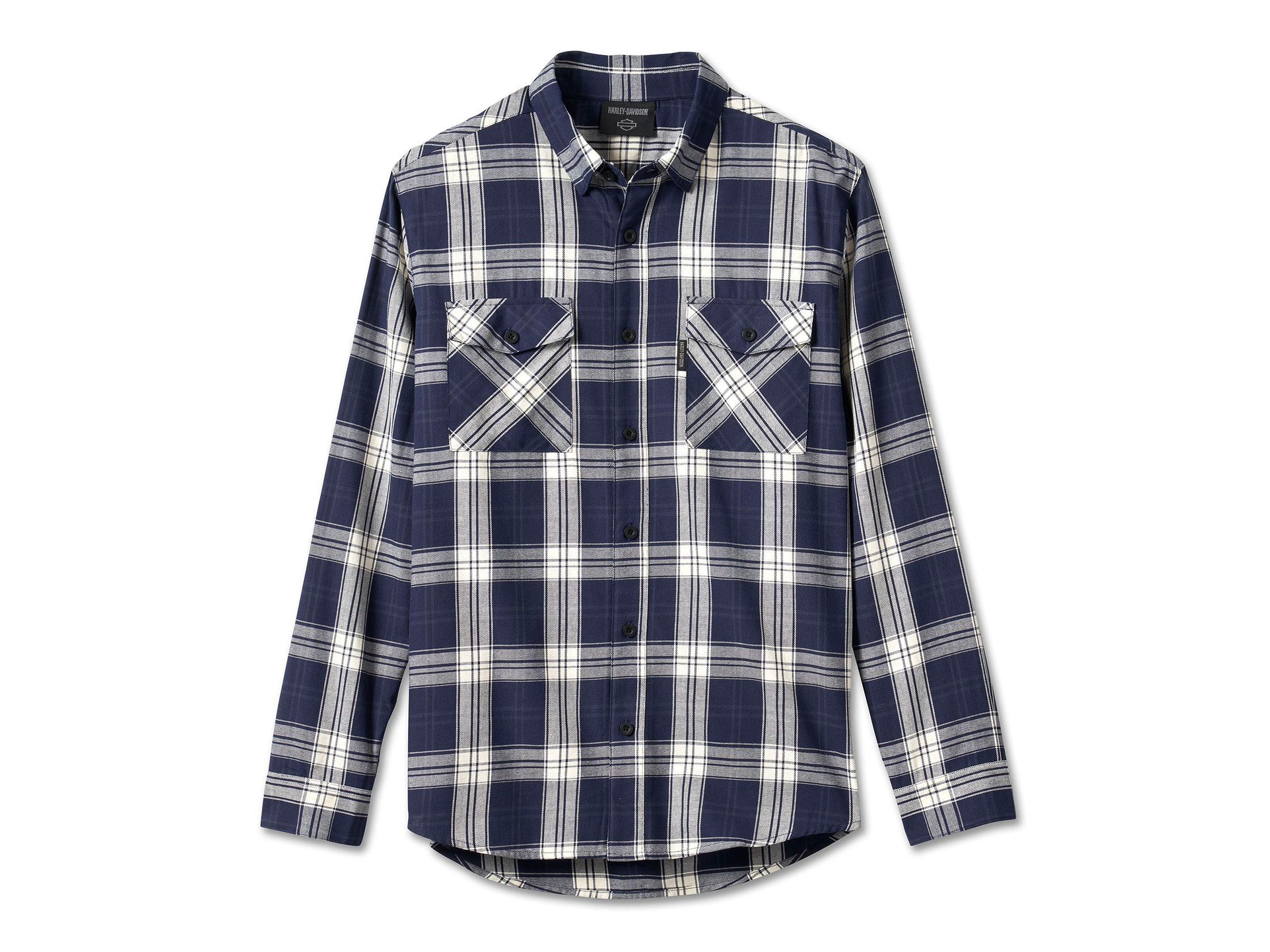 Ein lässiges kariertes Hemd wie das Limited Edition Essence Shirt ist ein Muss im Kleiderschrank eines jeden Harley Fans. Dieses Hemd ist ein Gewinner schon wegen des hochwertigen Twills aus Baumwolle. Es verfügt über Brusttaschen und einen Kragen mit versteckten Druckknöpfen, der beim Fahren auf der endlose Straße an seinem Platz bleibt. Das schlichte Taschenetikett und das vielseitige Karomuster sorgen für eine lässige Ausstrahlung. Lässt sich hervorragend mit Jeans, Khaki- oder Cargo-Hosen kombinieren.