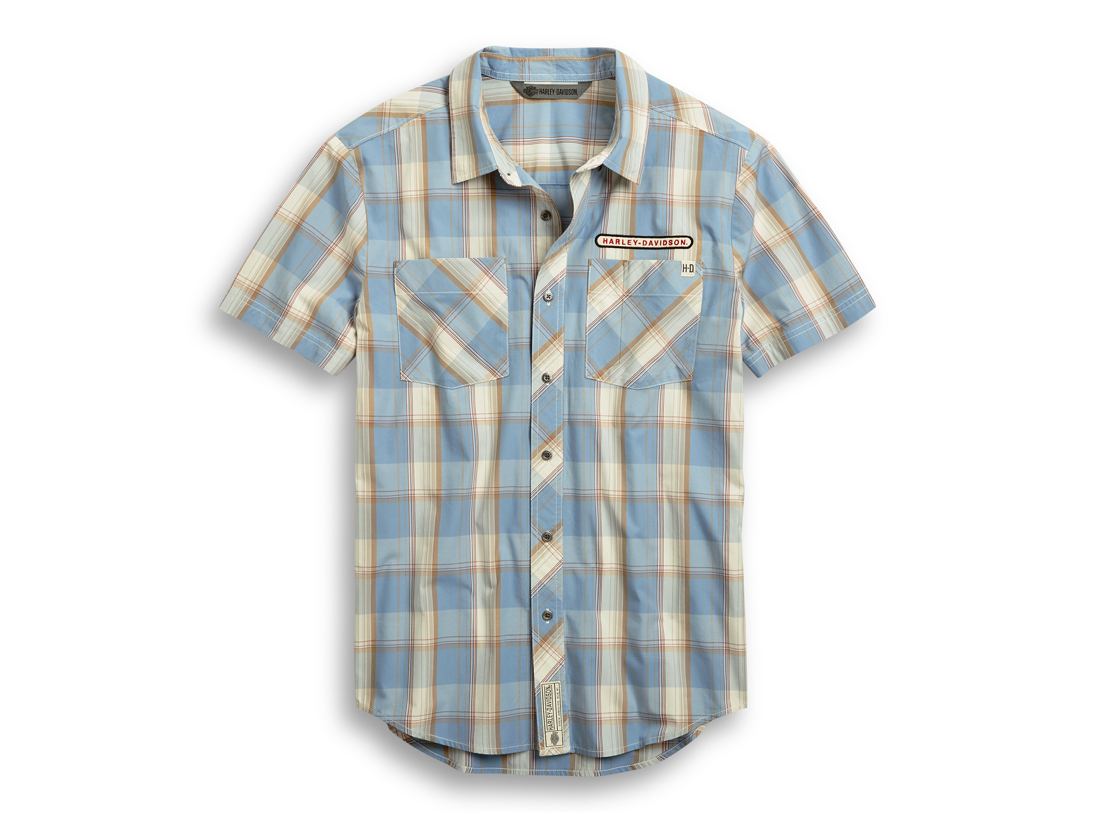 Das Plaid Woven Shirt ist wie ein altes Lieblingsstück, dank Vintage-inspiriertem Muster. Das hellblaue Karo mit feinem rotem Gitter als Akzentfarbe, die das Rot im gestickten Aufnäher aufnimmt. Männer-Kurzarmhemd aus leichtem Baumwoll-Popelin in köperbetonter Slim-Fit-Ausführung. Materialien: Das gefärbte karierte Garn aus 100% Baumwoll-Popeline wird gewaschen, um es weicher zu machen. Passform: Slim Fit
