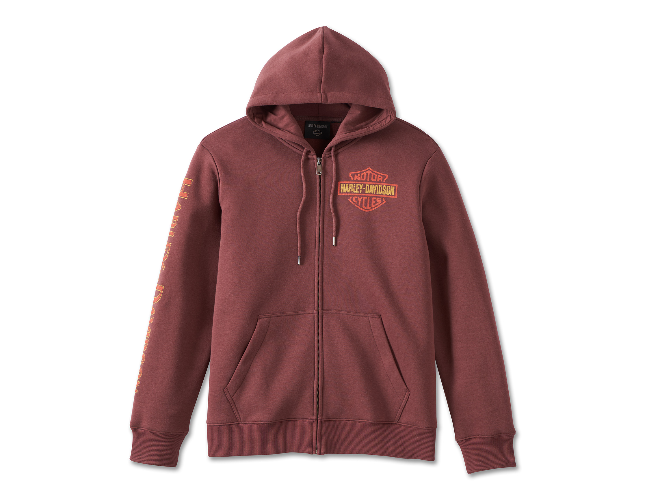 Unser Limited Edition Classic Eagle Zip-Up Hoodie bietet ein Upgrade des Retro-Stils für Harley Liebhaber wie Dich. Gefertigt aus einer kuscheligen Fleece-Mischung aus Baumwolle und Polyester, im traditionellen Schnitt und im Slim-Fit-Schnitt erhältlich sowie mit Hoodie-Must-haves wie geräumigen Kängurutaschen und einer mit Jersey gefütterten Kapuze mit Kordel ausgestattet. Das Branding auf der Vorderseite, den Ärmeln und der Rückseite als künstlich gealterter Aufdruck sorgt für einen Vintage-Look, der Harley-Davidson schreit. Packe diese Schicht in Deinen Seitenkoffer, wenn die Temperaturen sinken, aber warte damit nicht zu lange: Es gibt sie nur, solange der Vorrat reicht.