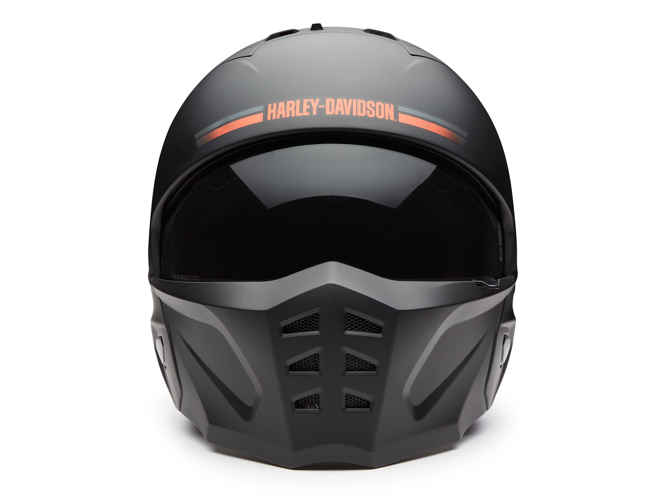 Mit dem H-D® Ultra X16 2-in-1 Helm hast Du Optionen, ohne auf Komfort und Schutz verzichten zu müssen. Er ist so konzipiert, dass er zwei Stile in einem bietet, je nach Deinen Präferenzen. Er verfügt über ein Belüftungssystem, das die Luft durch die Oberseite ein- und durch die Öffnungen des Gesichtsschutzes ausströmen lässt. Dank des kratzfesten Visiers, das auch Deine Augen vor schädlichen UV-Strahlen schützt, siehst Du die Straße besser. Im Inneren verfügt dieser Helm über 3D-geformte Kwikfit® Wangenpolster, die das Tragen einer Brille ermöglichen, ein feuchtigkeitsabführendes Futter, das sich leicht herausnehmen und reinigen lässt, und Lautsprechertaschen für die Bluetooth®-Kommunikation, damit Du während der Fahrt auf Freisprechanrufe, Navigation und Deine Lieblings-Songs zugreifen kannst. Das matte Harley Black Finish sorgt zusammen mit unseren Motiven für einen eleganten Moto-Look. Erfahre unten mehr über die Merkmale und bestelle dann Dein Exemplar so schnell wie möglich.