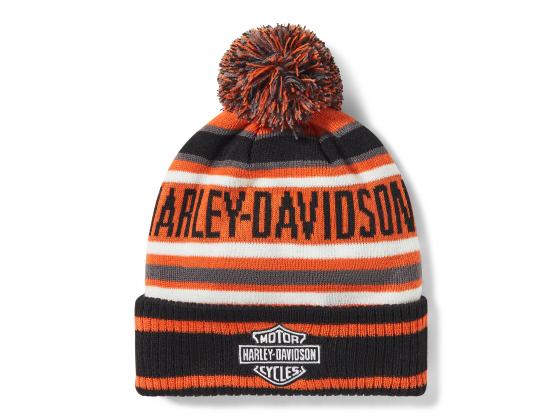 Unsere Harley-Davidson Stripe Pom Beanie steht ganz im Zeichen auffälligen, warmen Stils. Sie ist aus reinem Acryl gefertigt und bietet langanhaltenden Tragekomfort, ohne zu kratzen wie Wolle. Dieses Unisex-Accessoire ist mit einem mehrfarbigen Strickbommel, speziellen Allover-Motiven und Streifen sowie einem gestickten Patch für zusätzliche Dimension versehen.