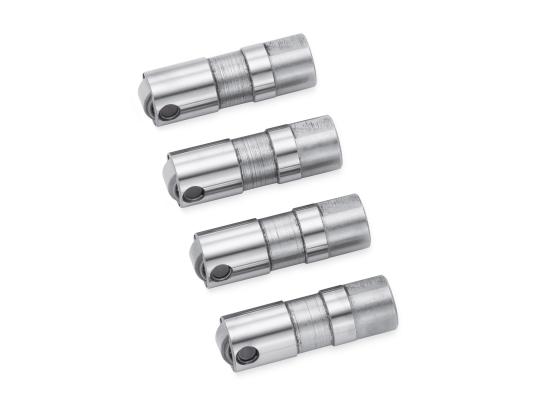 Screamin' Eagle Stößel verfügen über Hochleistungs-Nadeln im Kugellager, die die Zuverlässigkeit im Betrieb mit Nockenwellen mit höherem Hub, Hochdruckventilfedern und bei hohen Drehzahlen erhöhen. Die um 25 % vergrößerten Nadellager erhöhen die dynamische Tragzahl im Vergleich zu originalen Twin Cam Stößeln um ca. 20 %. Das einzigartige Design sorgt für eine hohe Lebensdauer der Stößel, auch bei hohen Leistungen. Vierteiliger Satz.