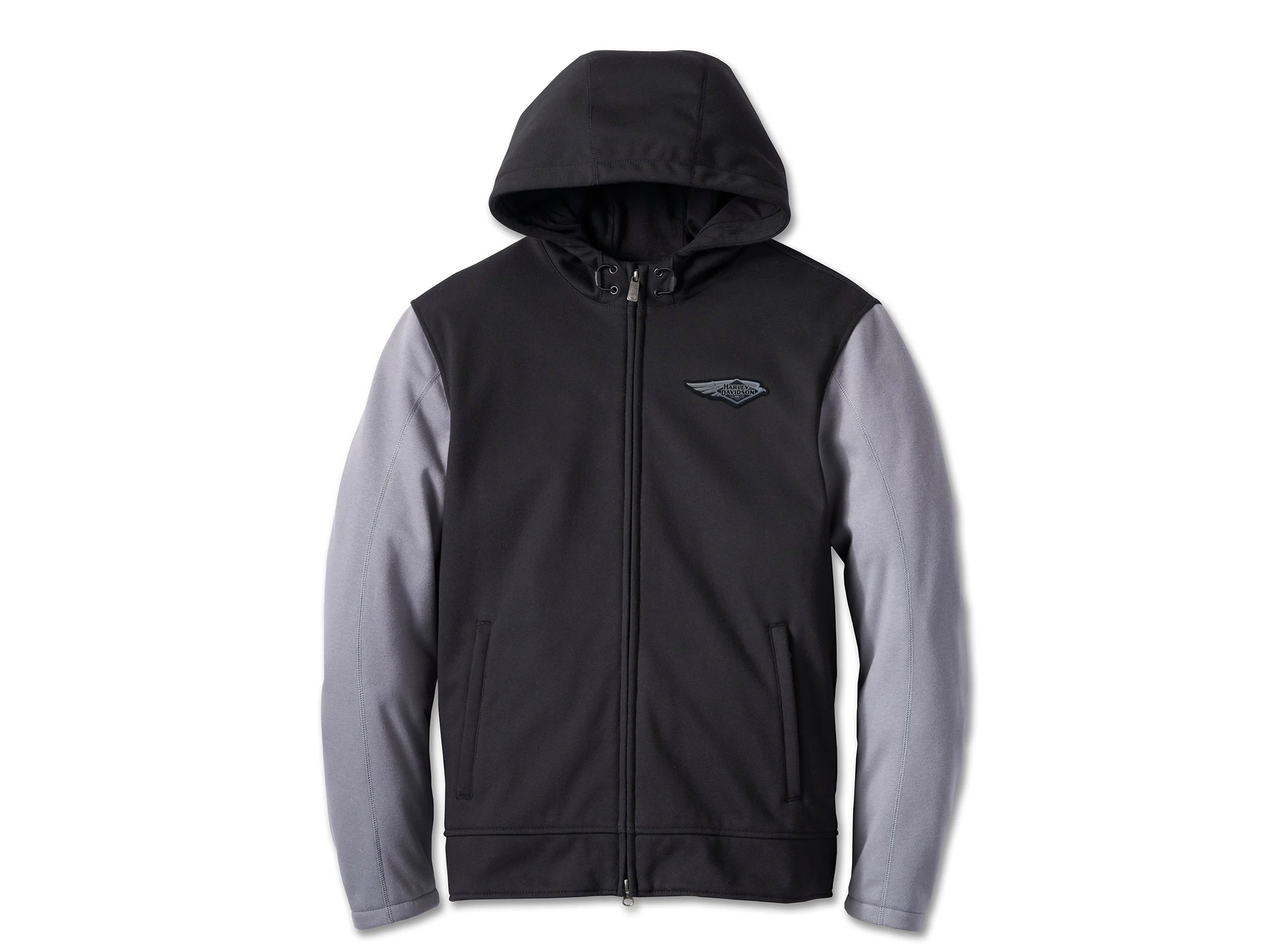 The hoodie look you love meets functional jacket protection in our 120th Anniversary Deflector Riding Fleece. Abrasion-resistant and available in a traditional, tall, and slim fit custom silhouette, it's built from a hardy cut of polyester and cotton polar fleece with a breathable mesh lining. When designers engineered this piece, they got everything right—it's windproof, vented, and loaded with features like pre-curved sleeves, an adjustable hood, reflective piping for added visibility, and plenty of secure pocket space for your essentials. Its casual style is proudly finished with our custom 120th Anniversary branding and hardware for a truly commemorative Harley-Davidson look. This fleece riding jacket is equipped with D3O Ghost Armor at the shoulders and elbows for superior breathability and shock absorption.