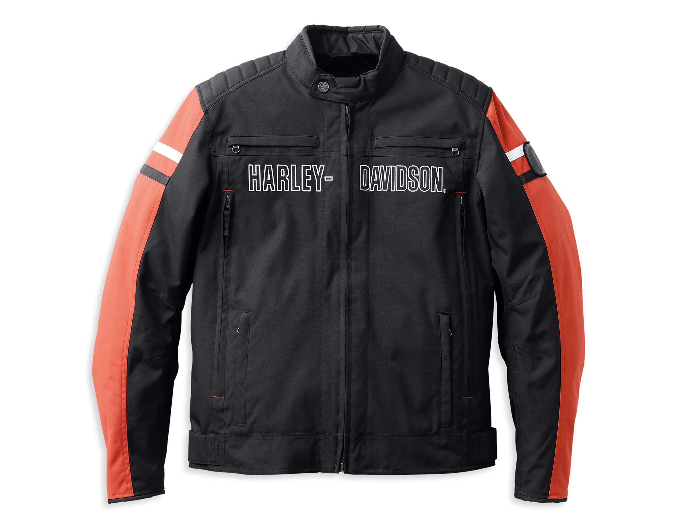 Take in the ride, not the rain with our Hazard Waterproof Textile Jacket. Made from a sturdy cut of 600 denier polyester twill that's waterproof and seam sealed with an interior zipper storm flap. This jacket makes your riding comfort and safety a priority with features like an action back, armor pockets, and reflective material throughout for added visibility. Also has plenty of pockets, including an interior zipper pocket with media port. Its enthusiast-inspired style showcases contrast taping and piecing, plus our embroidered namesake and a reflective patch of our inception date. For superior breathability and shock absorption, outfit this waterproof textile jacket with our new line of D3O" Ghost Armor.