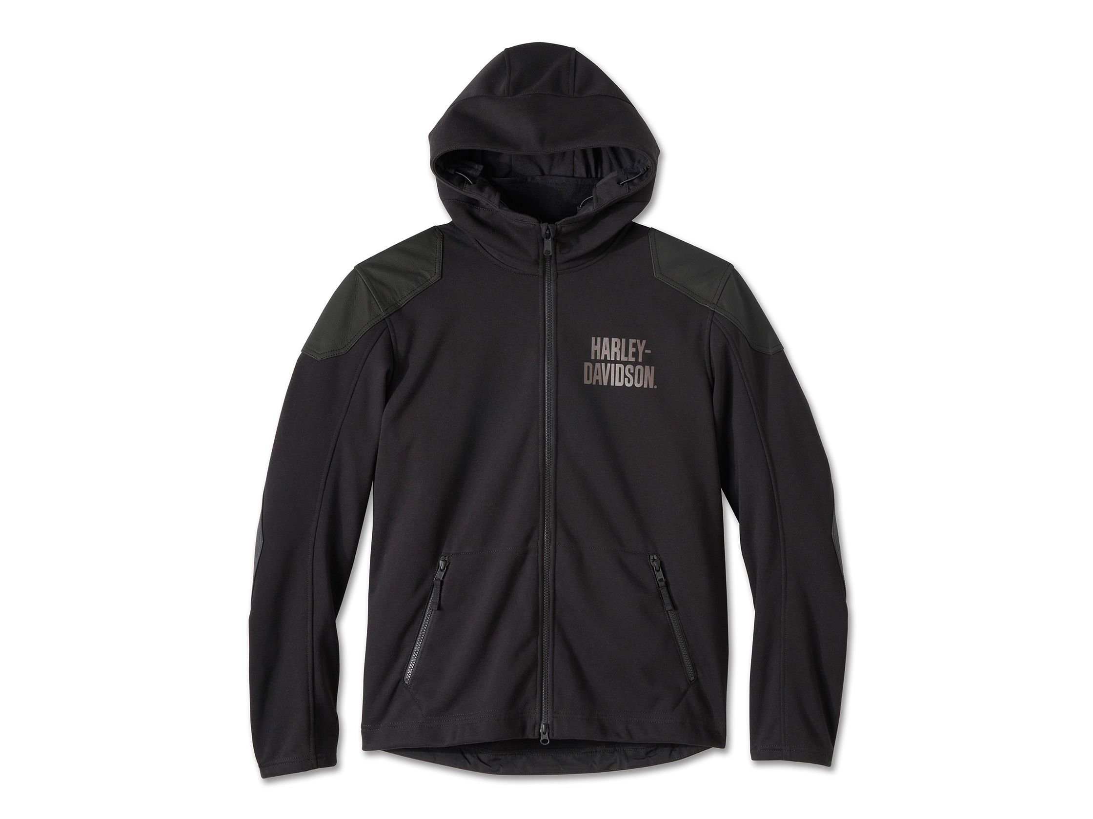 Casual style shares a lane with functional riding protection in our Willie G Skull Graphic Deflector 2.0 Hooded Riding Fleece. This latest men's riding jacket now includes superior impact protection with our D3O Ghost armor at the shoulders and elbows, plus reflective graphics for added visibility. We've also extended the venting area to welcome more airflow, added a zip-down hood to reduce drag while riding, and included zippered hand-warmer pockets for securing essentials. Made from rugged polyester and cotton polar fleece with a partial mesh lining, it's engineered to be abrasion-resistant and windproof. It's finished with leather patching, our subtle branding on front, and the iconic Willie G Skull brooding on back. See all of its specs below, then claim yours while supplies last.