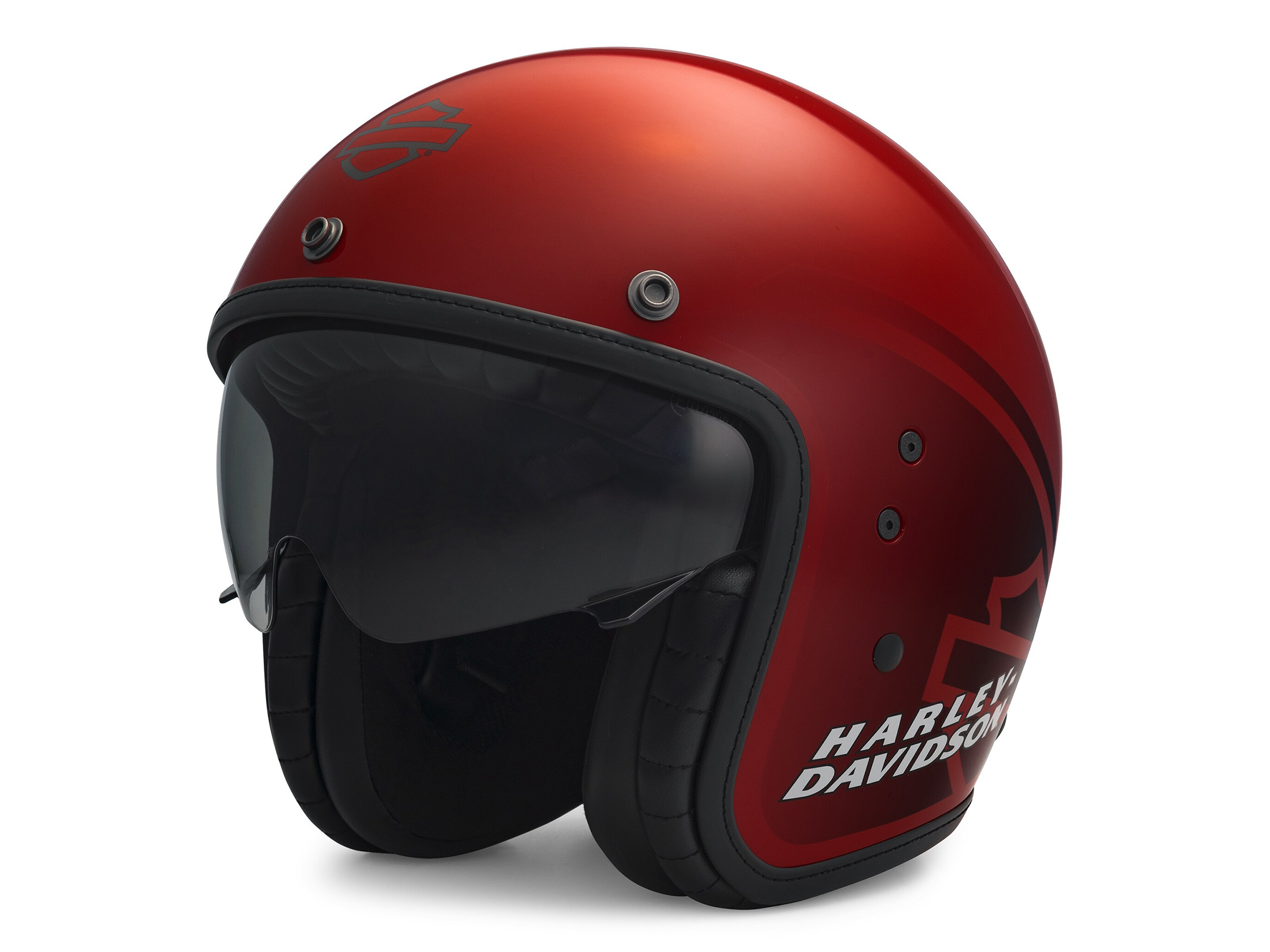 Protection that doesn't put a crimp on your open-road experience. Our Metropolitan Sun Shield X14 Three-Quarter Helmet is DOT-approved and wisely engineered from pre-pregnated fiberglass with a retractable sun shield that's scratch-resistant and a removable, moisture-wicking liner. Its BOOM!" Audio 20S Bluetooth® compatibility lets you stay on course, connected, and close to your favorite motorcycling playlist. Its red-hot graphics make no apologies for your H-D® adventure-loving lifestyle. Scroll down to geek out on more of its specs…