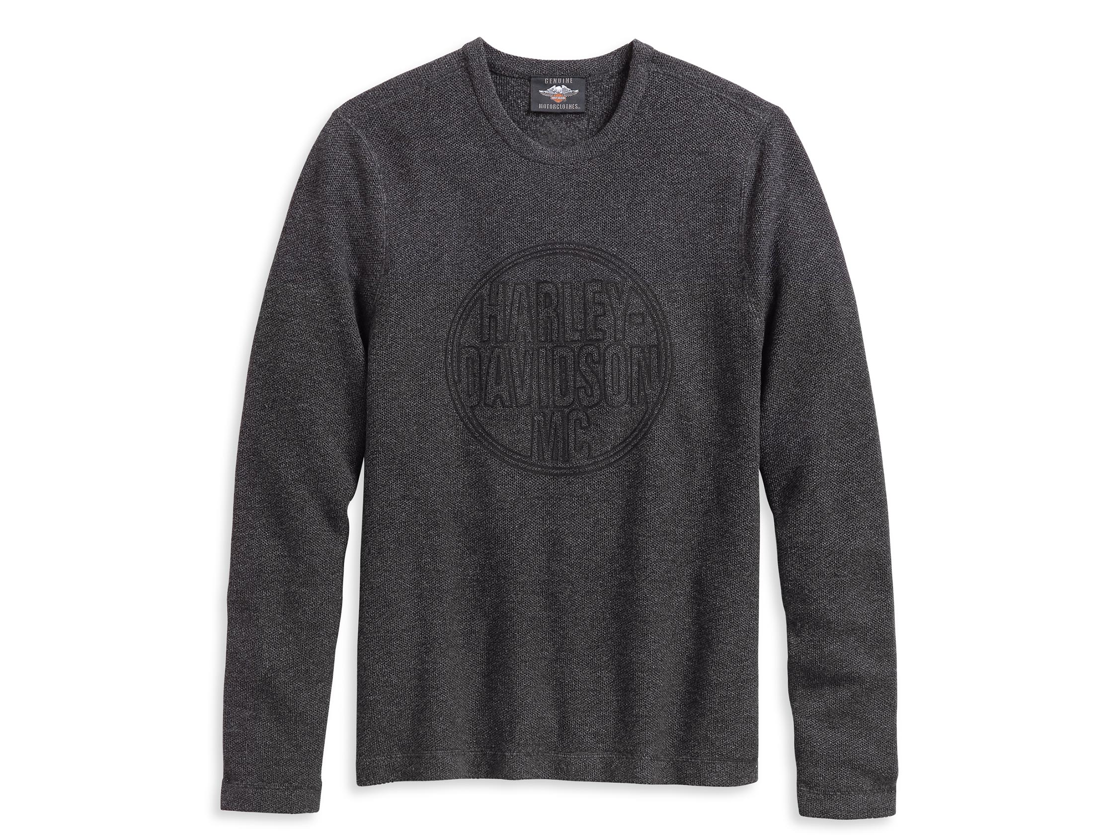 On those rare occasions when you need to "dress up" in something other than a tee and jeans, give the Circle Logo Sweater a go. The soft knit layer includes oversized embroidered graphics in tonal color—bold, but not brash. Holiday party? This men's sweater is festive (and you can still wear it with jeans). Materials: 60% cotton, 40% viscose.