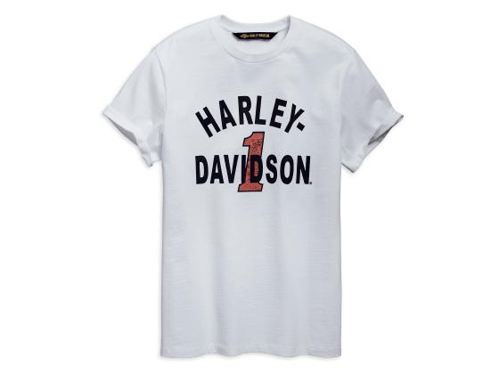 Inspired by vintage race wear, the simple graphics make a powerful statement on our Cracked Print Tee. This men's short sleeve shirt (cut from hefty cotton) is uniquely washed for a convincing faded look. Distressed and cracked graphics dial up the archival feel. Materials: 100% cotton jersey.