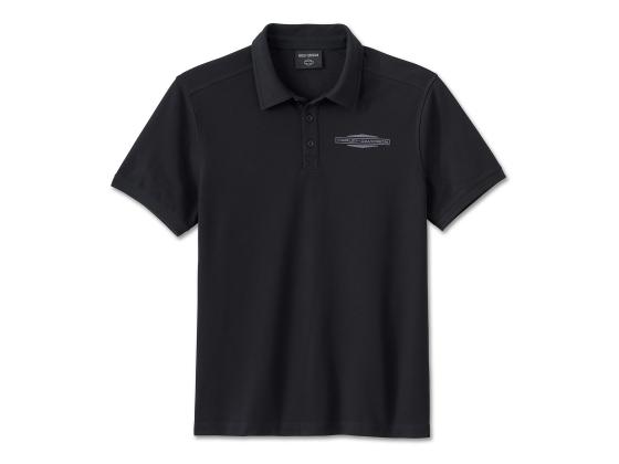From morning tee times to business dinners, your H-D style is on point in our Stacked Bar & Shield Polo. Made from a cotton/polyester pique blend for longwearing comfort, this men's short sleeve polo shirt features a three-button placket plus shoulder piecing for an elevated look. Minimally branded on front with our circa 1963 logo that was originally extended horizontally to better fit our motorcycle gas tanks.