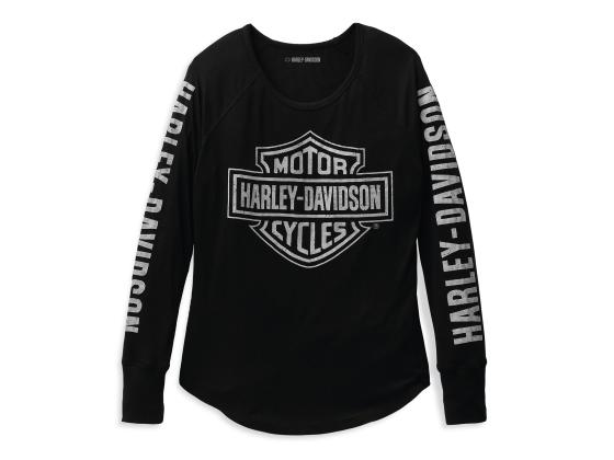 We went all out for the Authentic Bar & Shield Rib-Knit Top. The premium fabric is a blend of modal + polyester + spandex for a lightweight feel and exceptional quality. Soft-hand distressed printed graphics dare to stand out with bold contrast on front and sleeves. For an added feminine touch, we give it a flattering scoop neckline - perfect to show off a skull charm necklace or bandana.