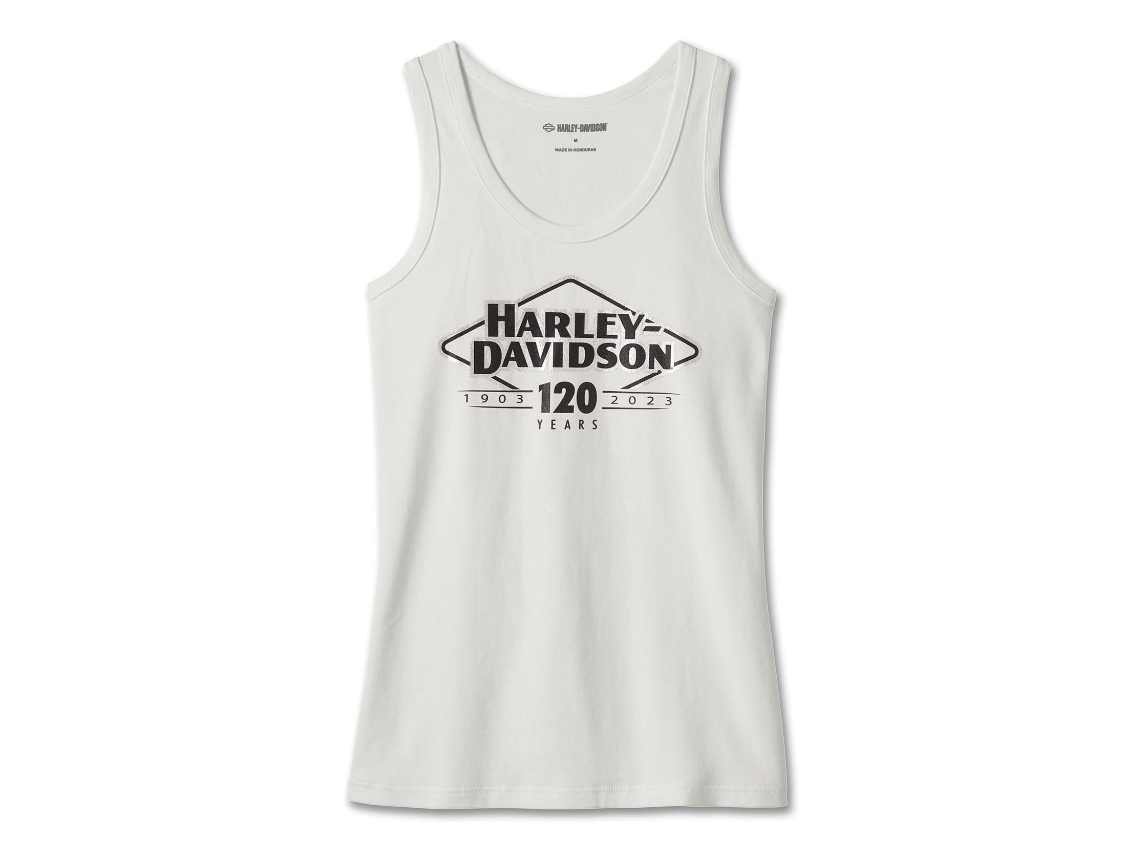 For legendary style that shines, add our 120th Anniversary Ultra Classic Tank to your wardrobe. Made from breathable cotton with a hit of spandex for added stretch, it features a flattering scoop neckline. Its shine comes from the bold celebration of our customized 120th-year branding that's finished with metallic ink.
