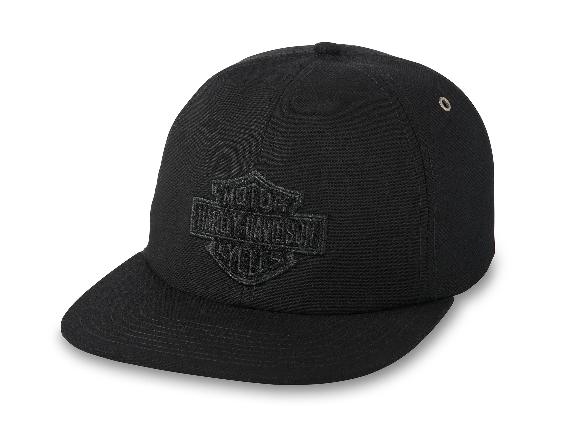 For timeless Harley-Davidson style, snag yourself a Bar & Shield Strapback Hat. This men's cap is built from rugged yet breathable cotton canvas with an adjustable leather strap for your ideal fit. Features elevated style details like brushed nickel grommets, a branded metal slider, and an embroidered appliqué of our most iconic logo.