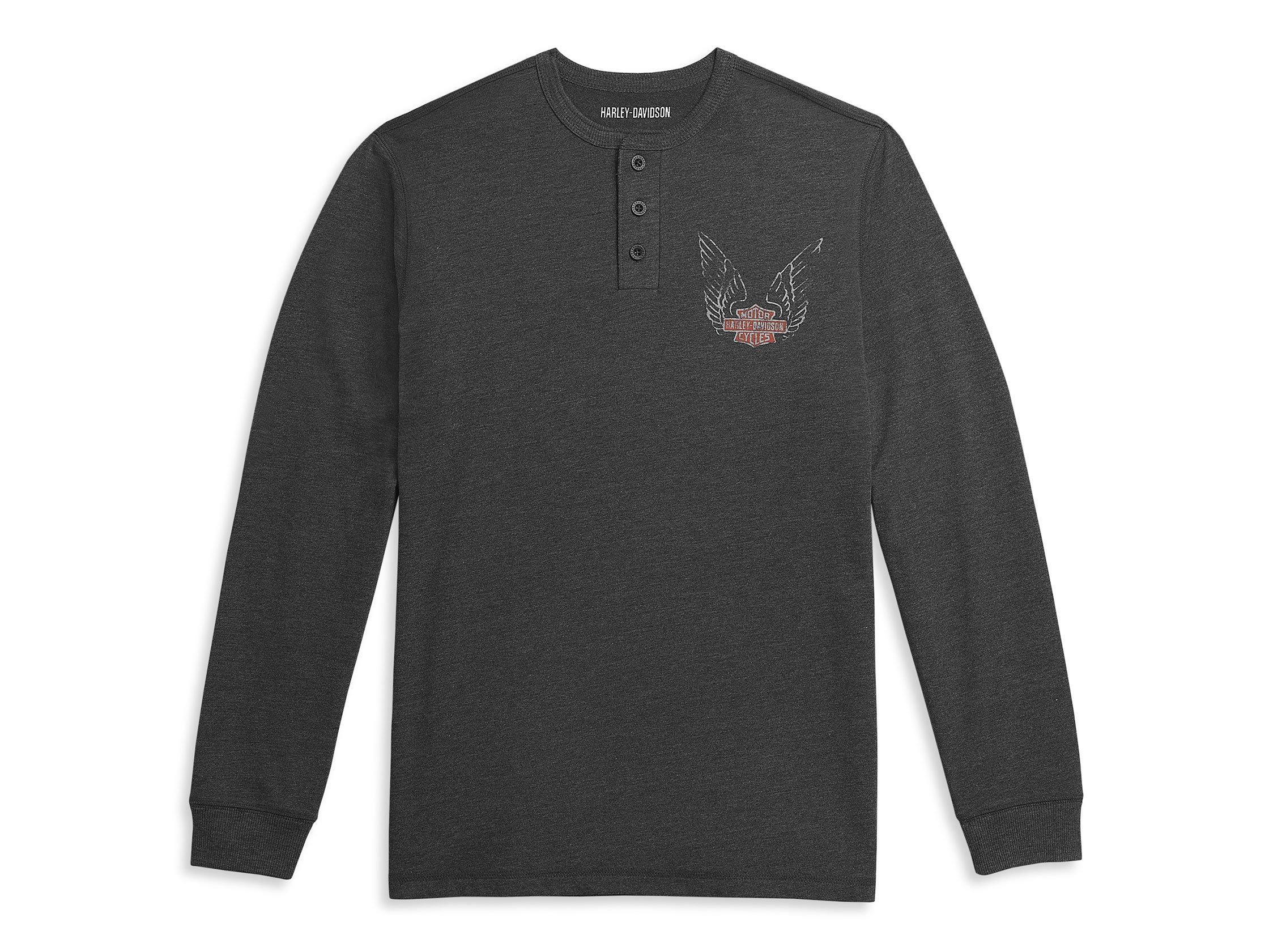 There's fast, then there's freedom fast. We've sped up this classic Henley style with a vintage inspired freedom design that beckons on the front and boasts on the back. Made from 100% cotton jersey material for a blanket-soft feel.