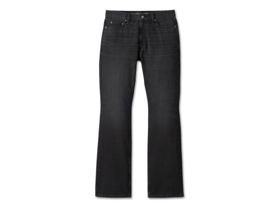 Versatility and comfort reign in our H-D Bootcut Jean. Made from a heavy-weight cut of cotton with a hit of spandex denim, lightly distressed for a lived-in look. These jeans sit just below the waist with a regular fit through the hip and thigh. The wide bootleg opening fits easily with your riding boots. As part of our revamped denim jean line, they're finished with an updated branded leather patch and a comfort bonus—a printed inside waistband versus a traditional (and sometimes itchy) label.