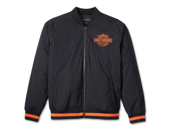 Maximum bagger performance meets timeless style on our Limited Edition Screamin' Eagle® Bomber. Its nylon taffeta build is lined and has a light poly fill for added warmth, while its rib-knit trim adds stretch and durability. Finished with vibrant striping plus race-inspired branding for a fast-lane look that's 100% Harley-Davidson®.