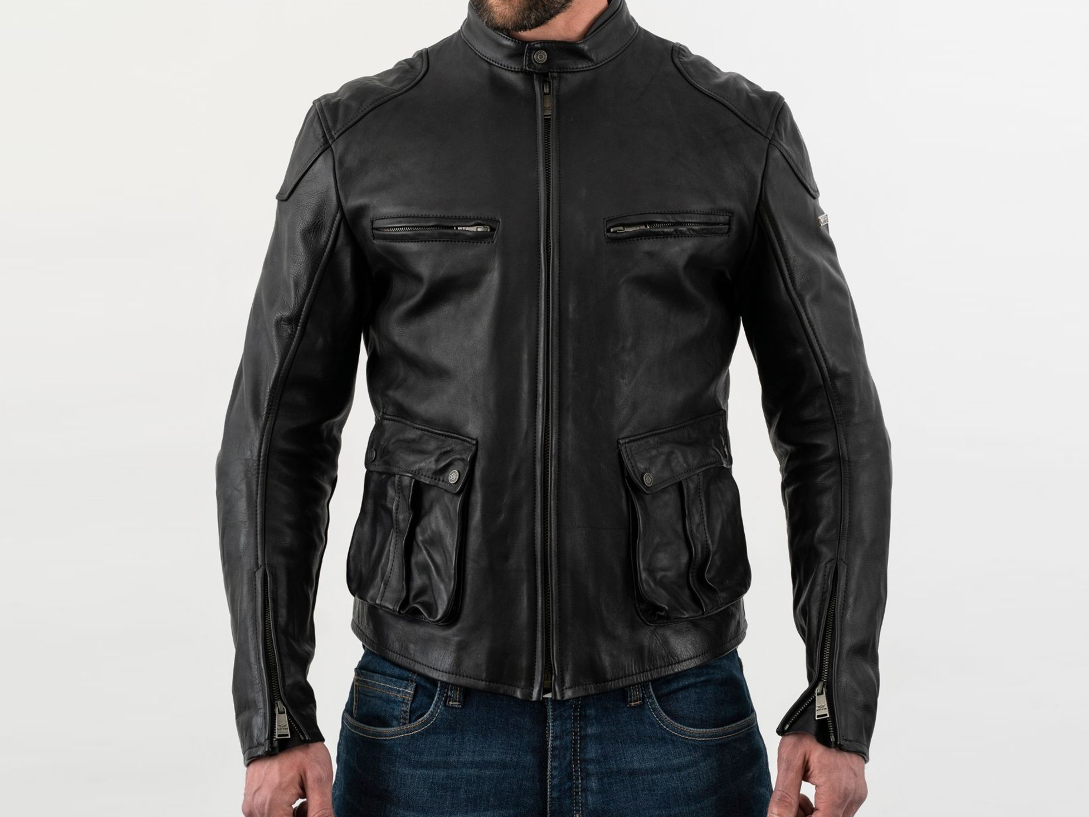 · Construction: Highly abrasion resistant men's leather jacket with D3O® protectors and stand-up collar