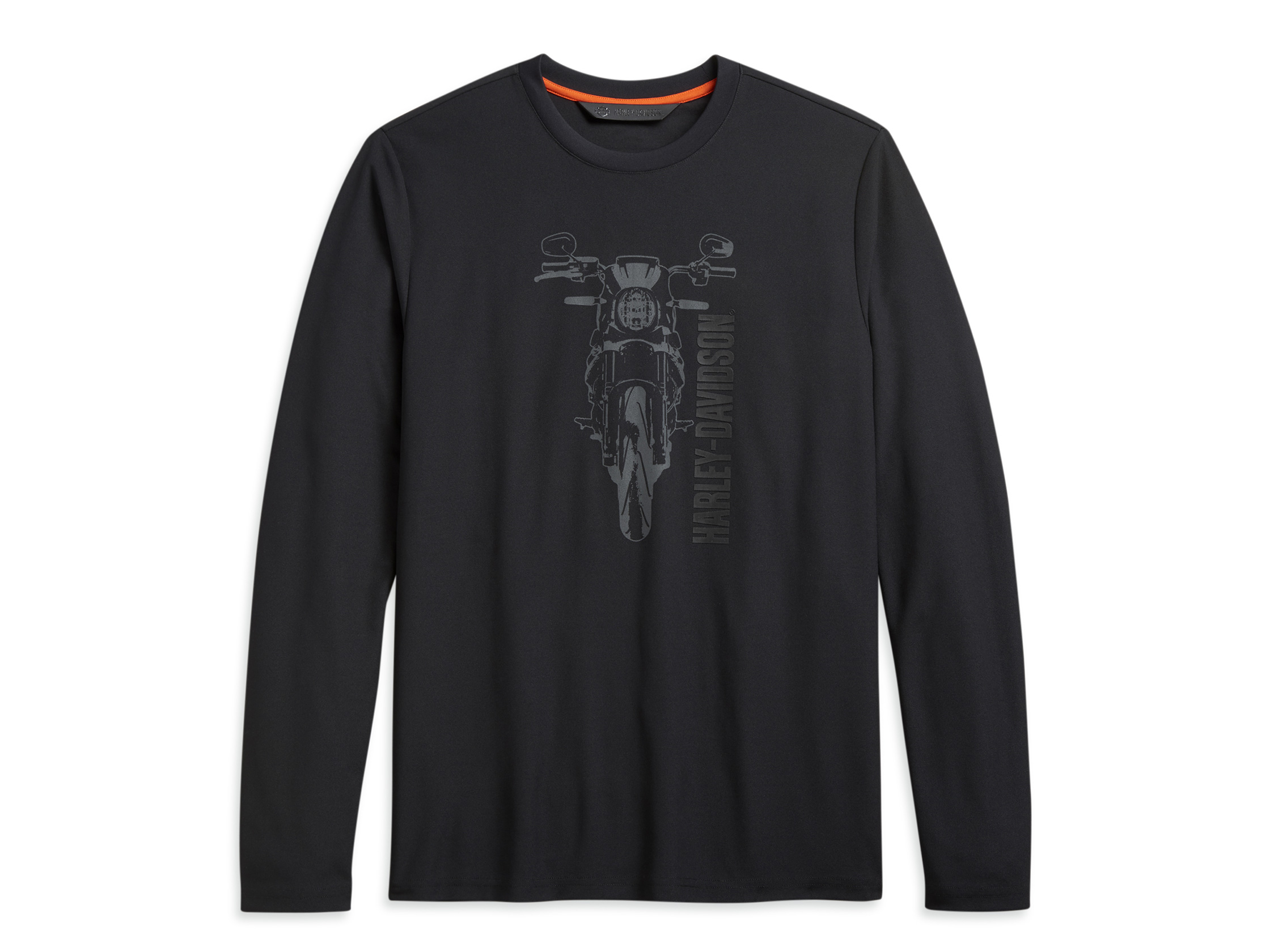 A classic black tee never goes out of style. This season we offer the Motorcycle Graphic Slim Fit Tee with art and dimensional type for added style. This men's long sleeve shirt is cut from soft poly piqué for a comfortable fit. Materials: 100% polyester piqué.