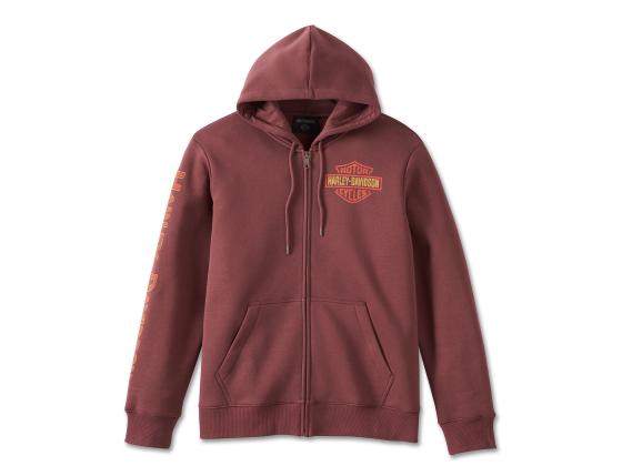 Throwback style is retooled for Harley lovers like you in our Limited Edition Classic Eagle Zip-Up Hoodie. Made from a cozy cotton/poly fleece blend, it's available in a traditional and slim fit custom silhouette with favorite hoodie features like roomy kangaroo pockets and a jersey-lined drawstring hood. Branded on the front, sleeve, and back in a distressed print for a vintage-loving look that screams Harley-Davidson. Put this layer in your saddle bag to throw on when temps dip, but don't dilly-dally—it's only around while supplies last.